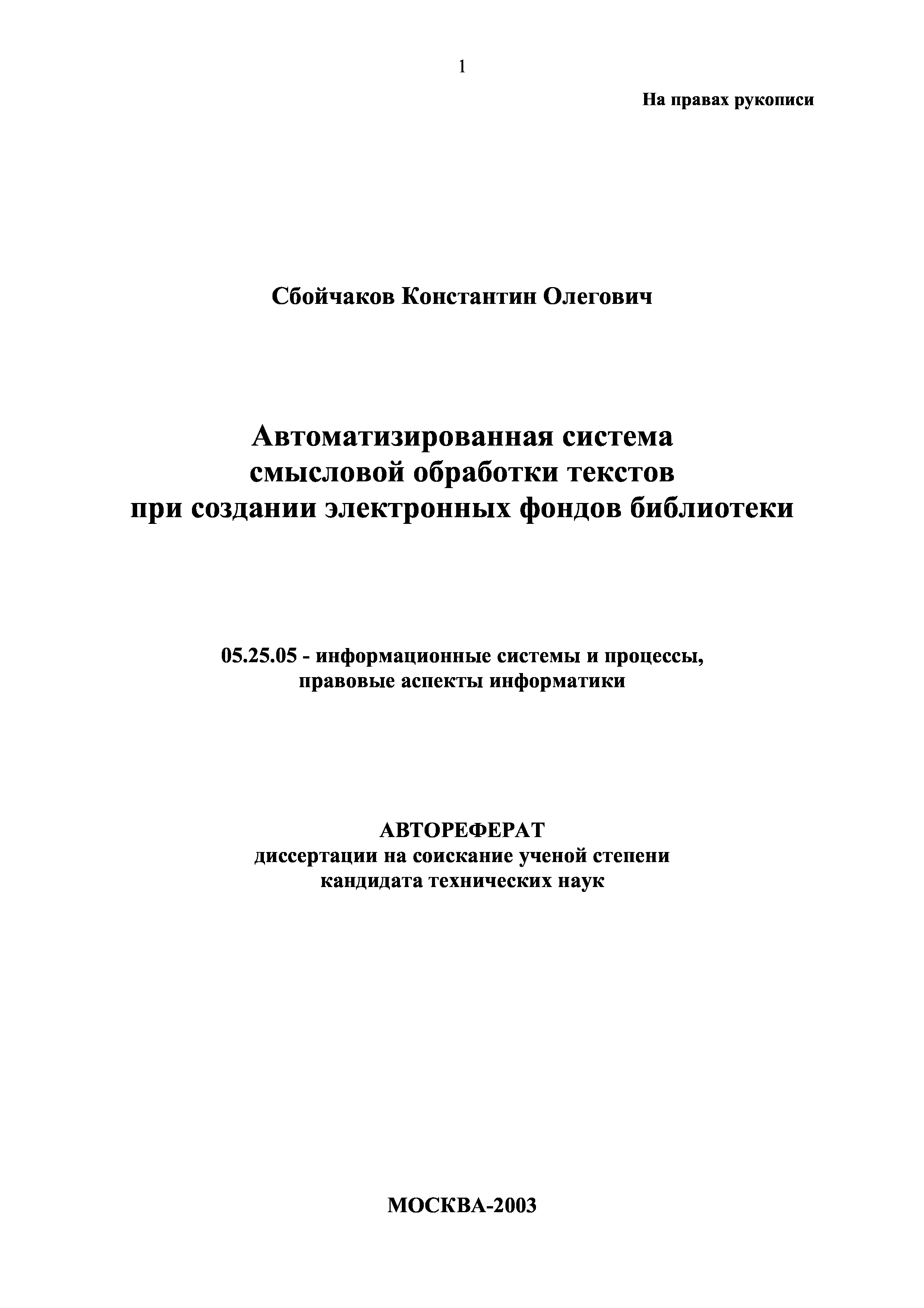 "Автоматизированная система смысловой обработки текстов при создании электронных фондов библиотеки(Автореферат)" - читать интересную книгу автора