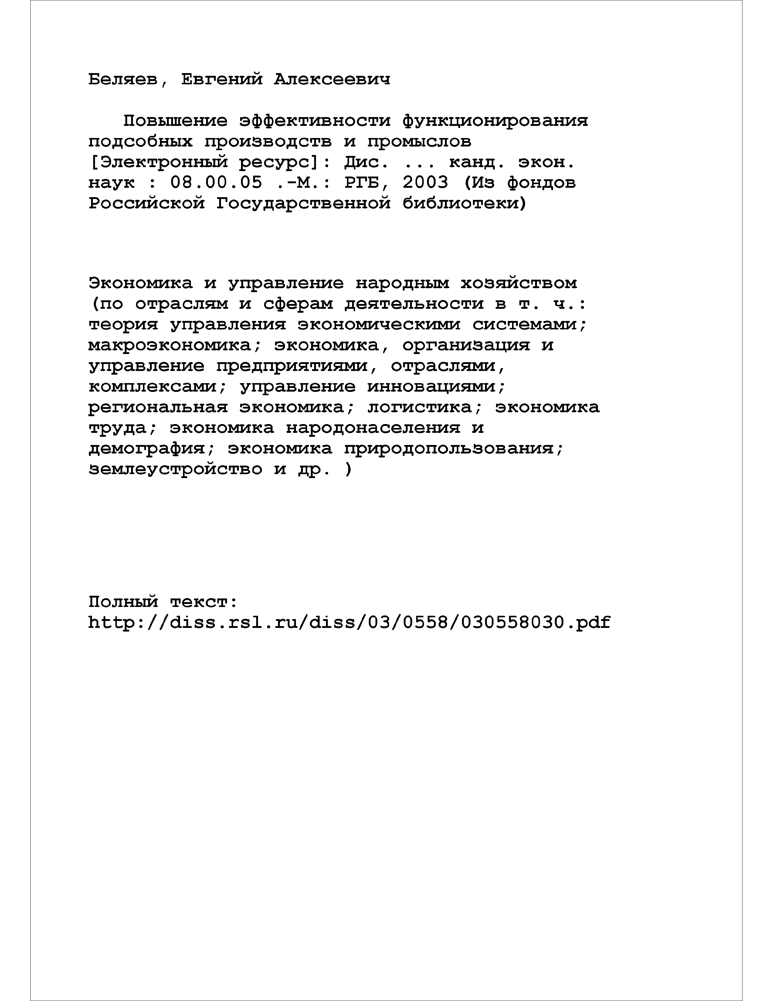 "Повышение эффективности функционирования подсобных производств и промыслов(Диссертация)" - читать интересную книгу автора (Беляев Е.А.)