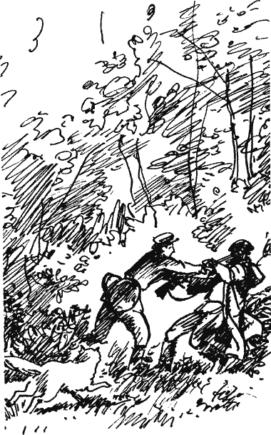 Он тянул и опрокидывал старика Митрохина. И уже падал в густые заросли орешника старик Митрохин, и плащ его беспомощно мотался по воздуху. — Зорро! — крикнул Митрохин. И Зорро вырвался из моих рук. С глухим рёвом, в котором смешивалось чувство обиды, гнева и боли, Зорро кинулся на помощь Митрохину. |