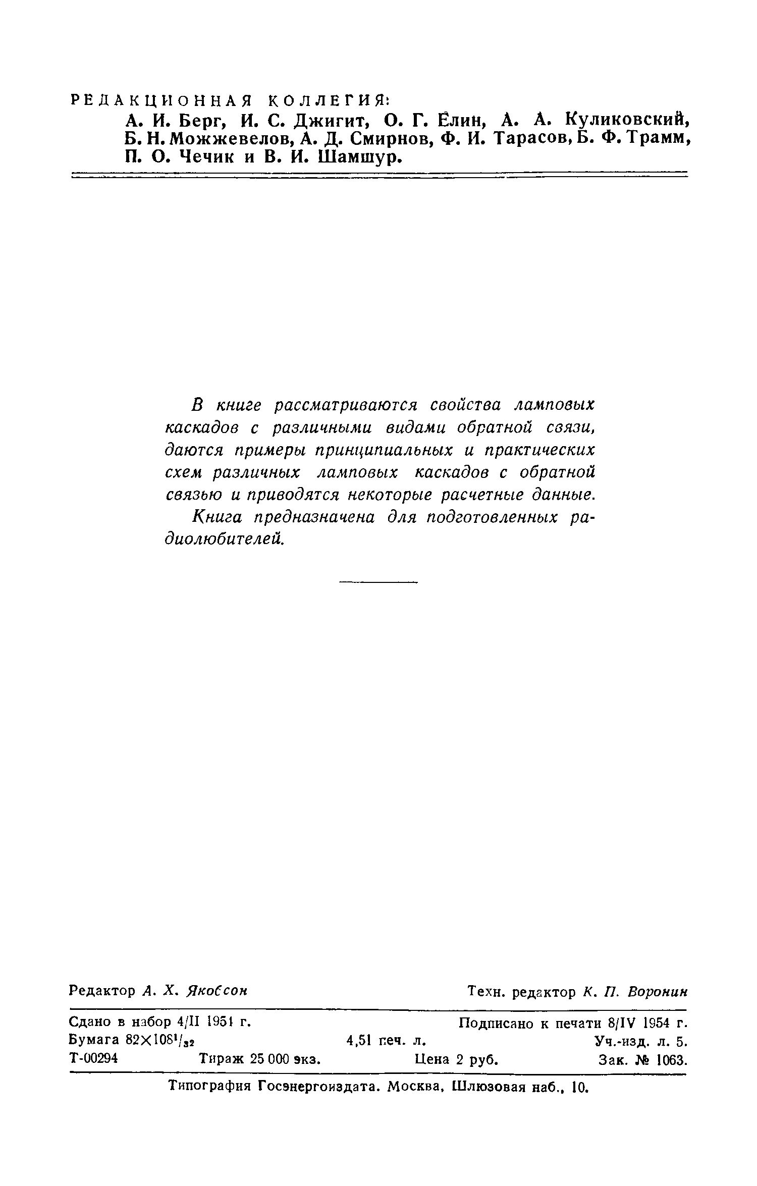 "Ламповый каскад с обратной связью" - читать интересную книгу автора