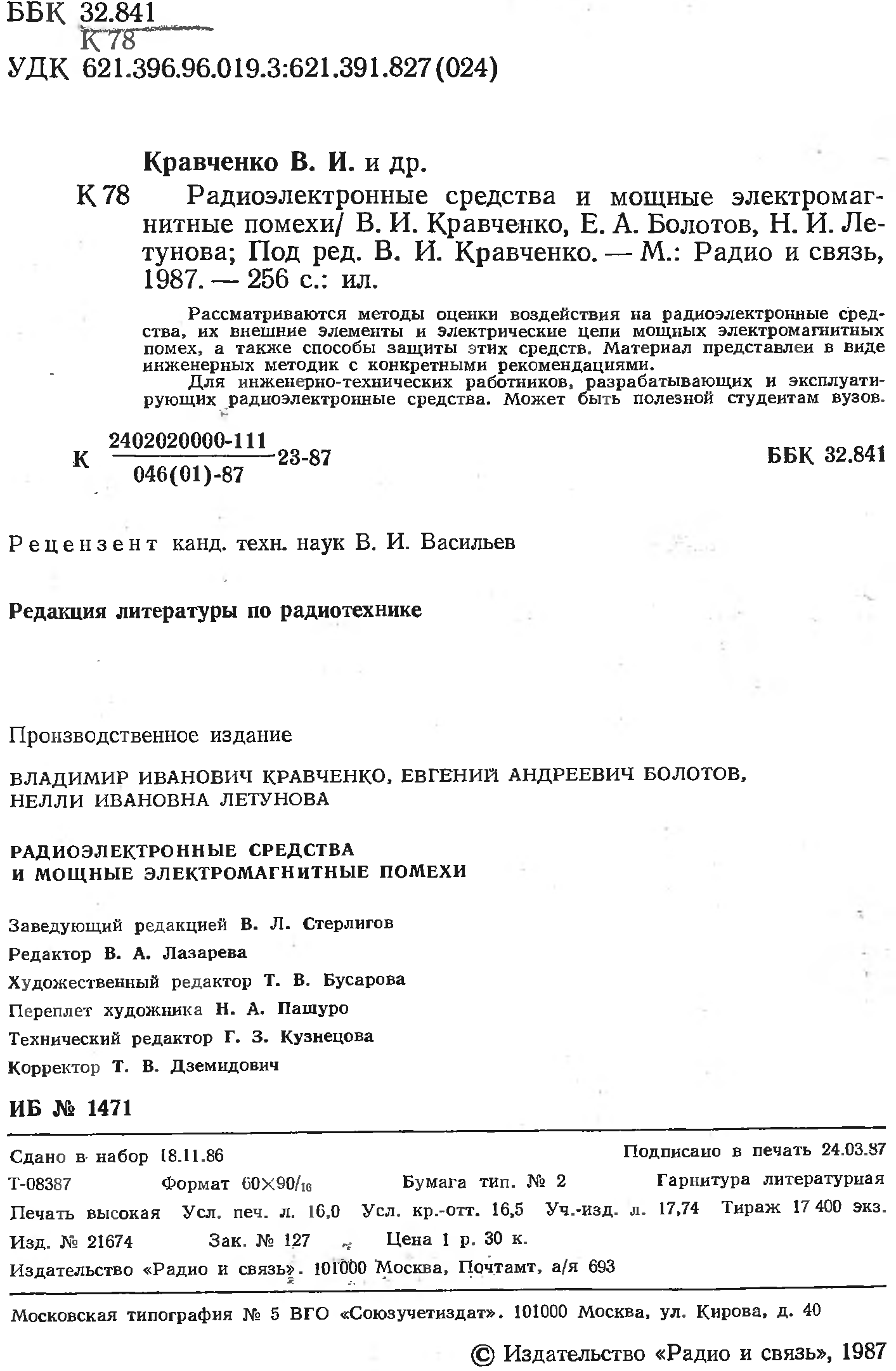 "Радиоэлектронные средства и мощные электромагнитные помехи" - читать интересную книгу автора