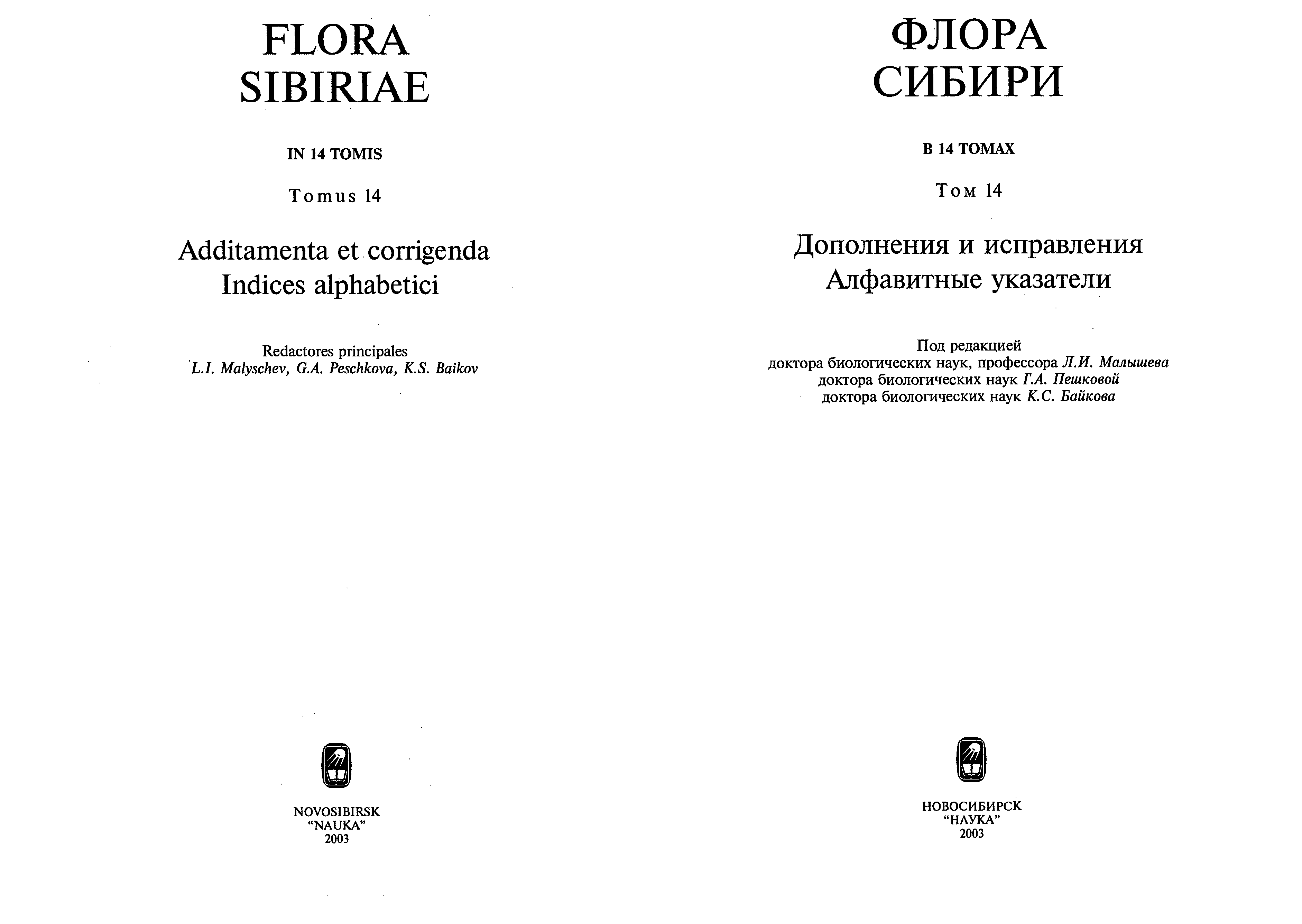 "Флора Сибири. Т. 14. Дополнения и исправления. Алфавитные указатели. Новосибирск, 2003" - читать интересную книгу автора