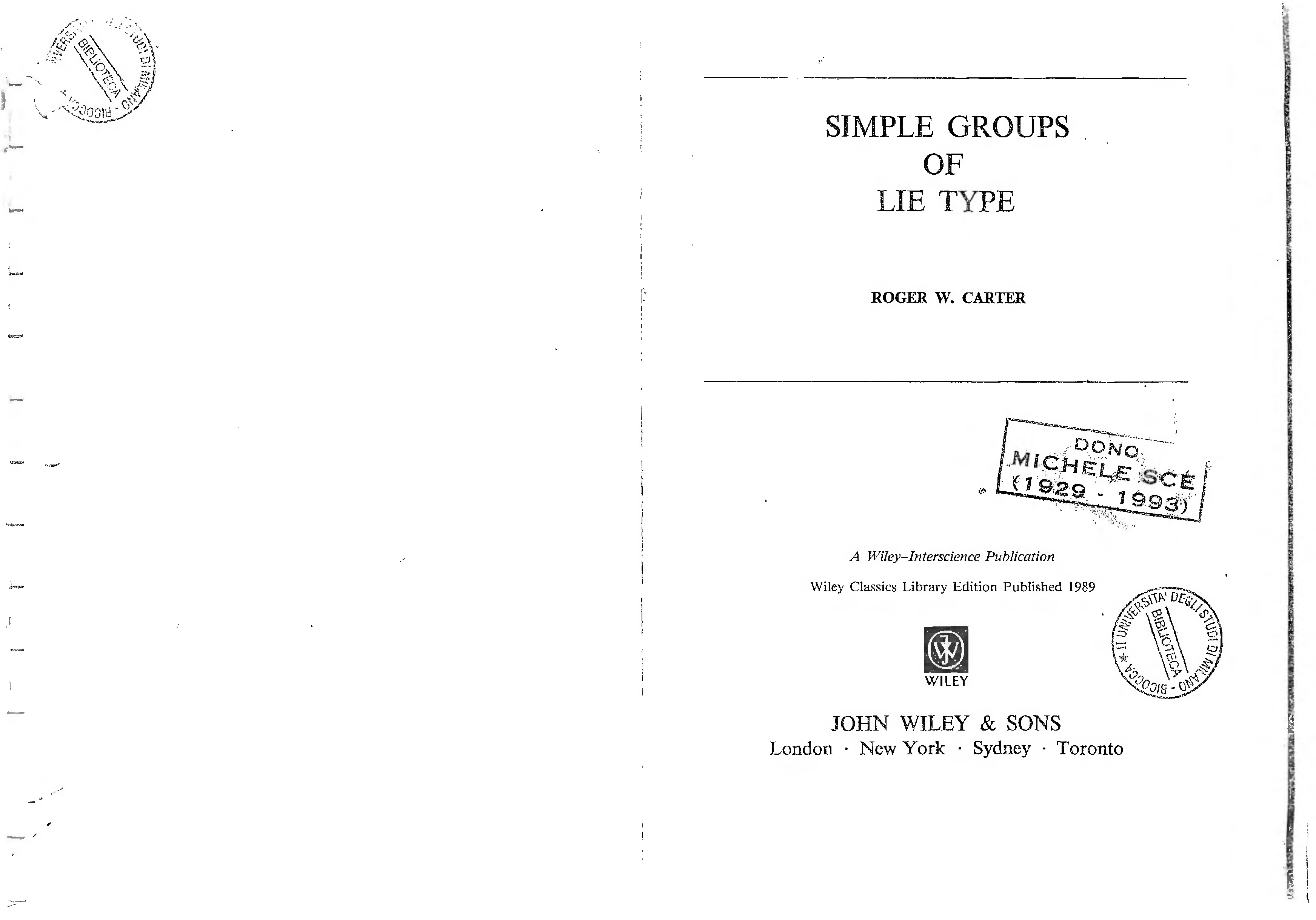 "Simple groups of lie type" - читать интересную книгу автора (Roger W. Carter)