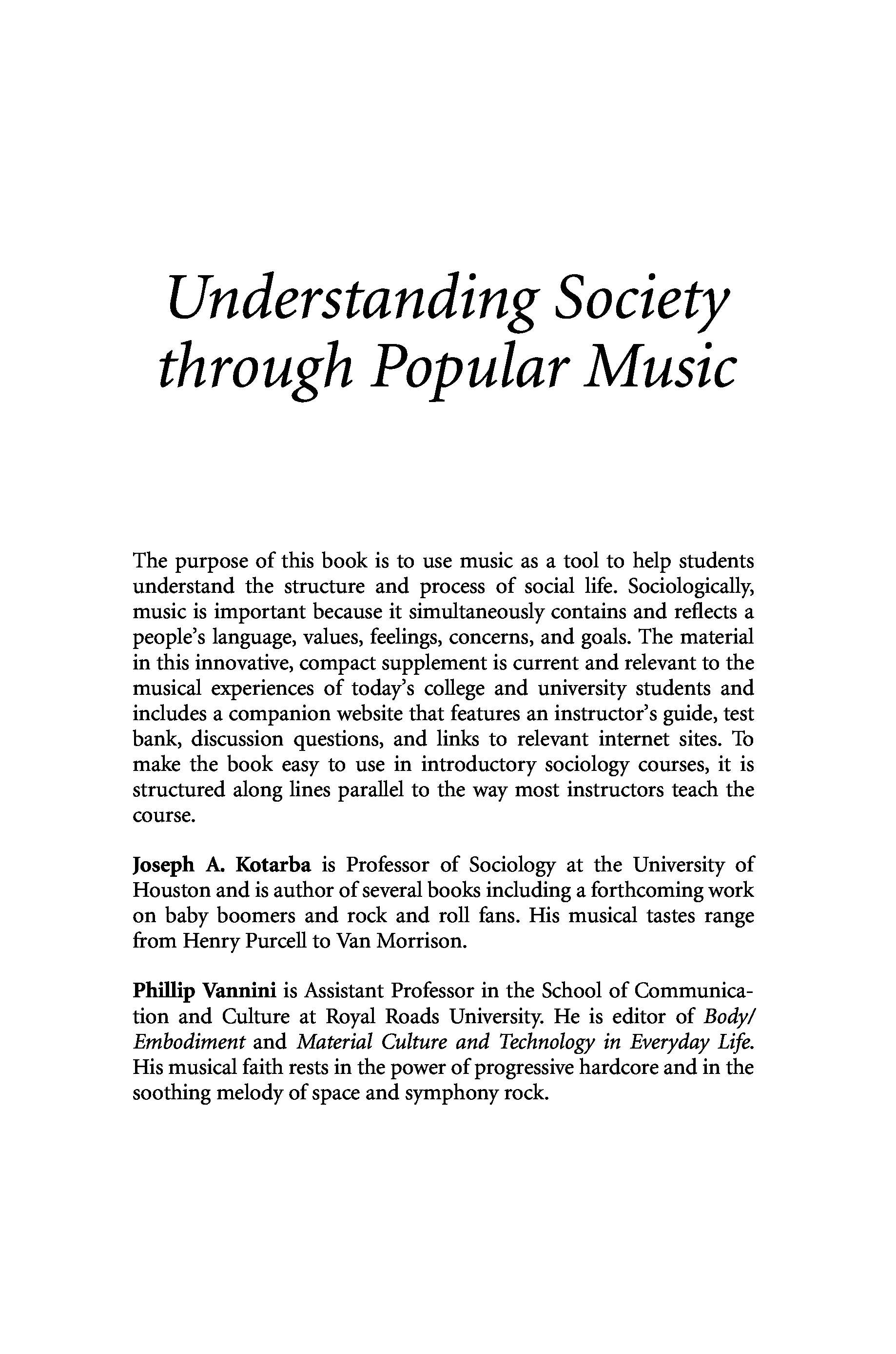 "Understanding society through popular music" - читать интересную книгу автора (Joe Kotarba, Phillip Vannini)