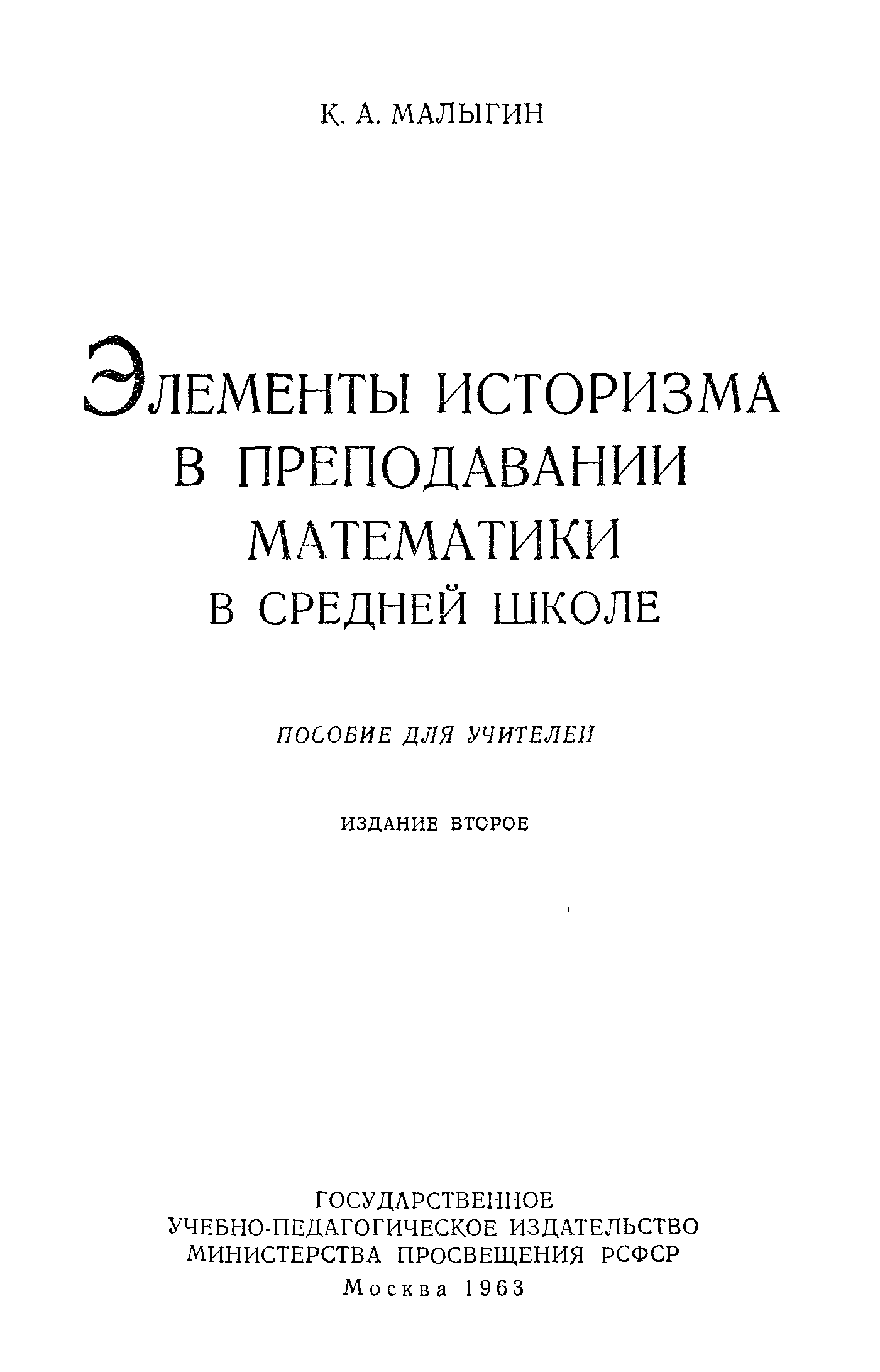 "Элементы историзма в преподавании математики в средней школе" - читать интересную книгу автора (Малыгин К.А.)
