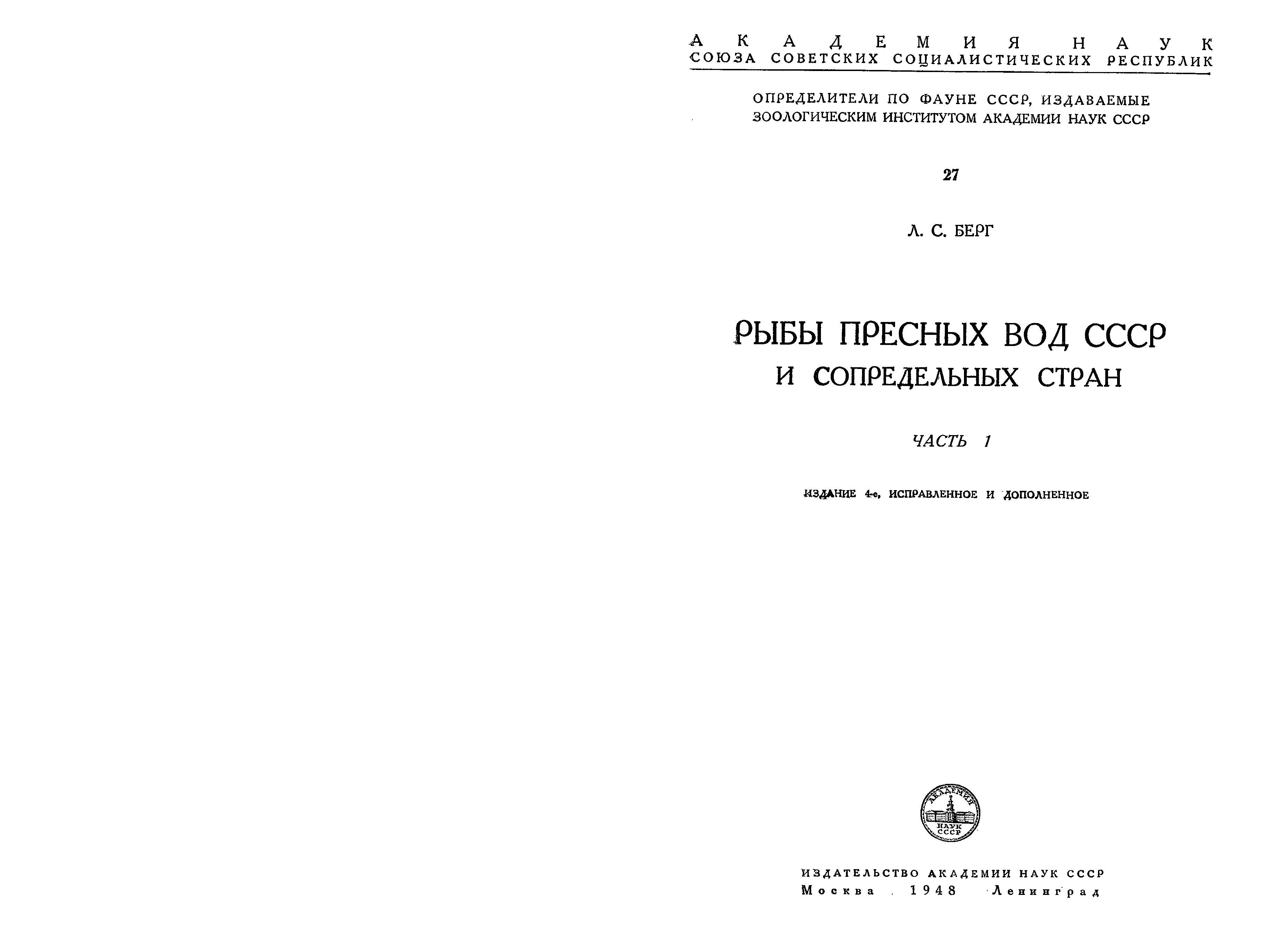 "Рыбы пресных вод СССР и сопредельных стран" - читать интересную книгу автора (Берг Л. С.)