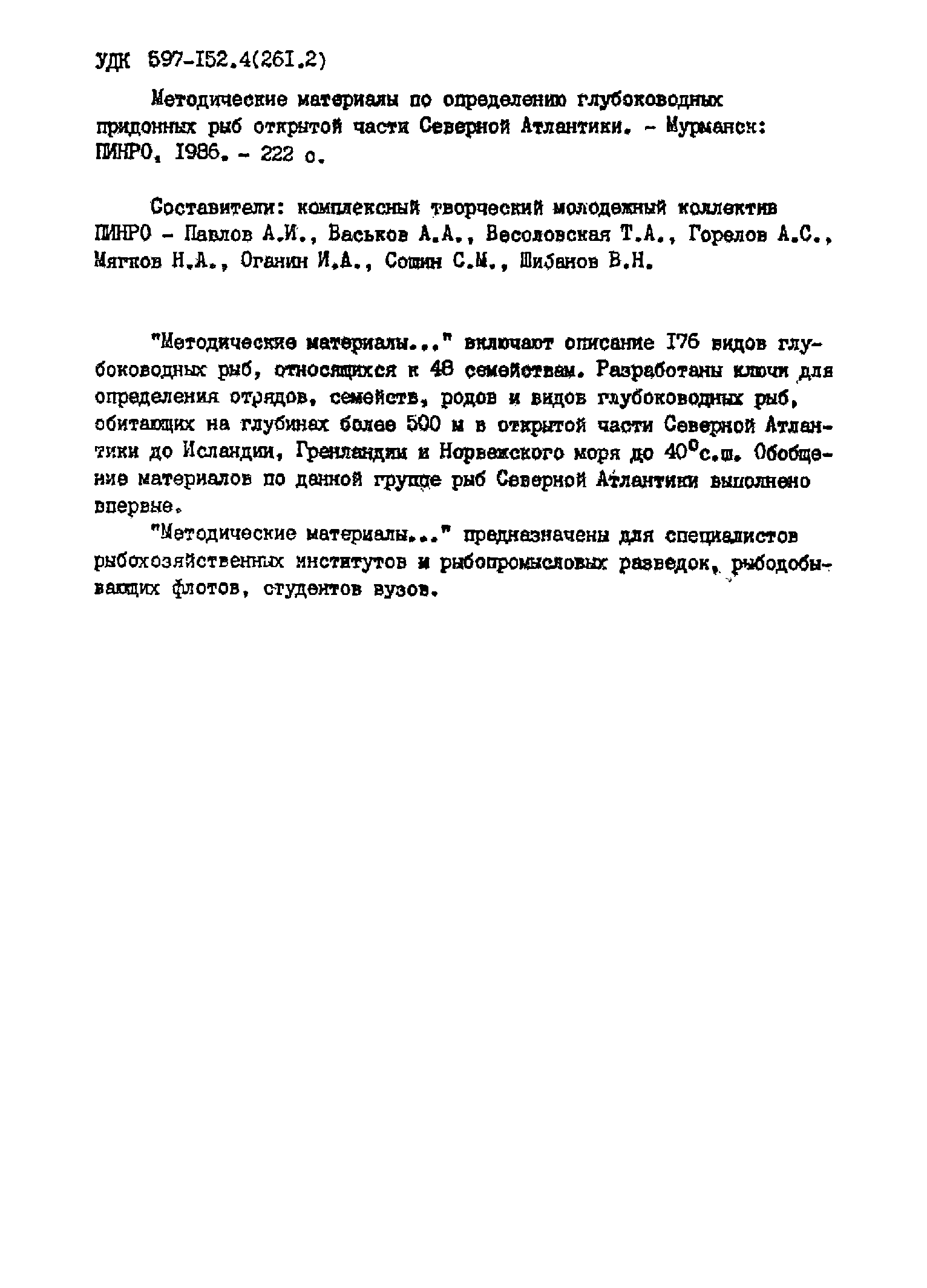 "Методические указания по определению глубоководных придонных рыб открытой части северной Атлантики" - читать интересную книгу автора
