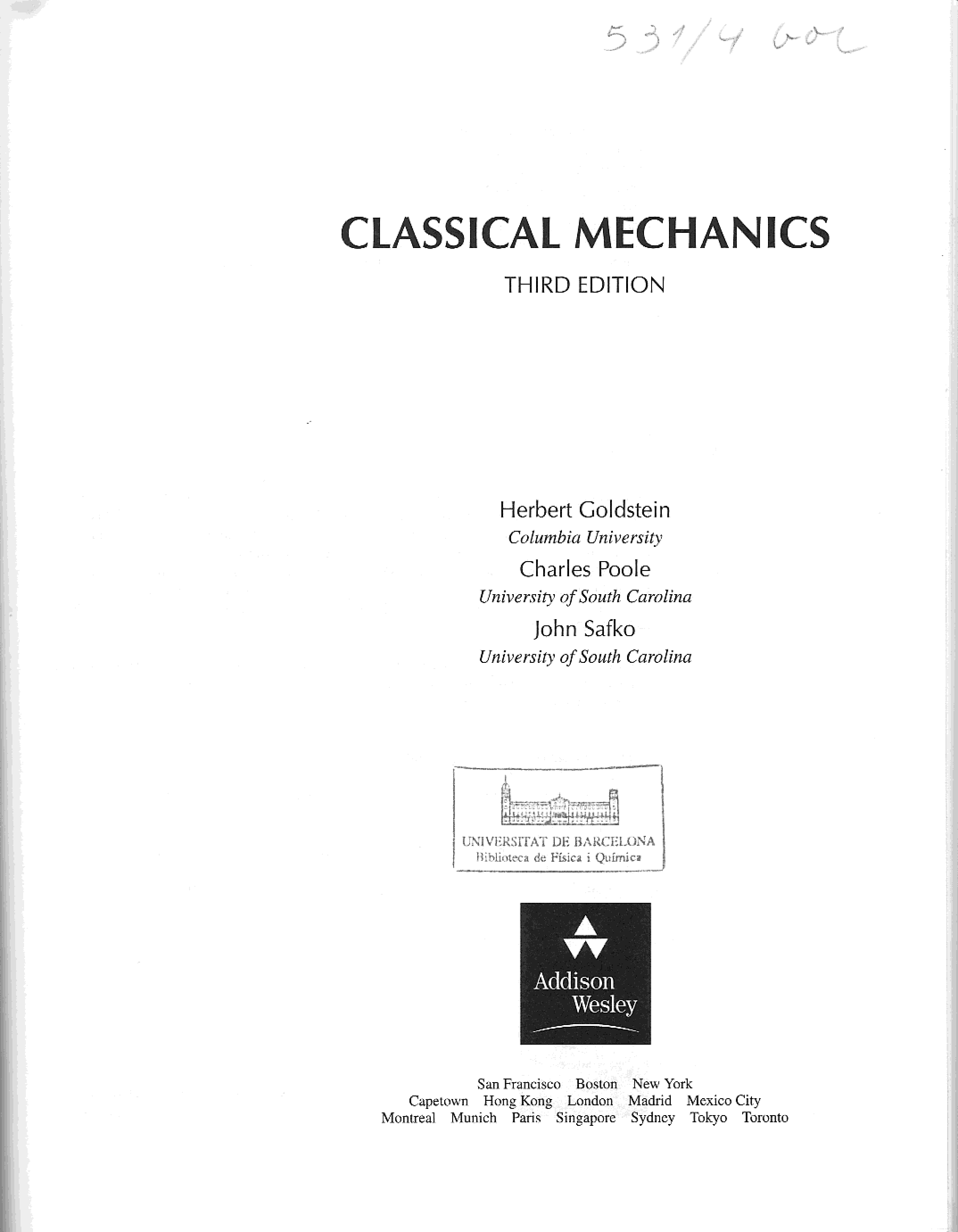 (Herbert Goldstein, Charles P. Poole, John L. Safko)