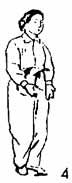 2. В момент, когда движение еще не прекратилось, обе руки опускаются вниз ниже живота; одновременно обе ноги начинают сгибаться, а левая пятка медленно поднимается (рис. 4).