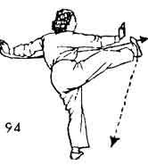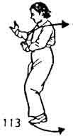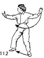 Продолжая, сделать шаг левой ногой влево. Обе руки разводятся в стороны и становятся в позицию "Хлыст" (рис. 112).