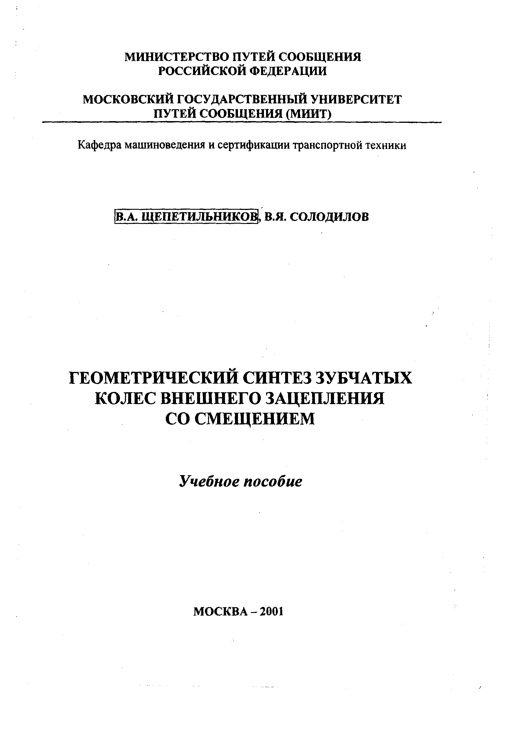 (Щепетильников В А , Солодилов В Я)