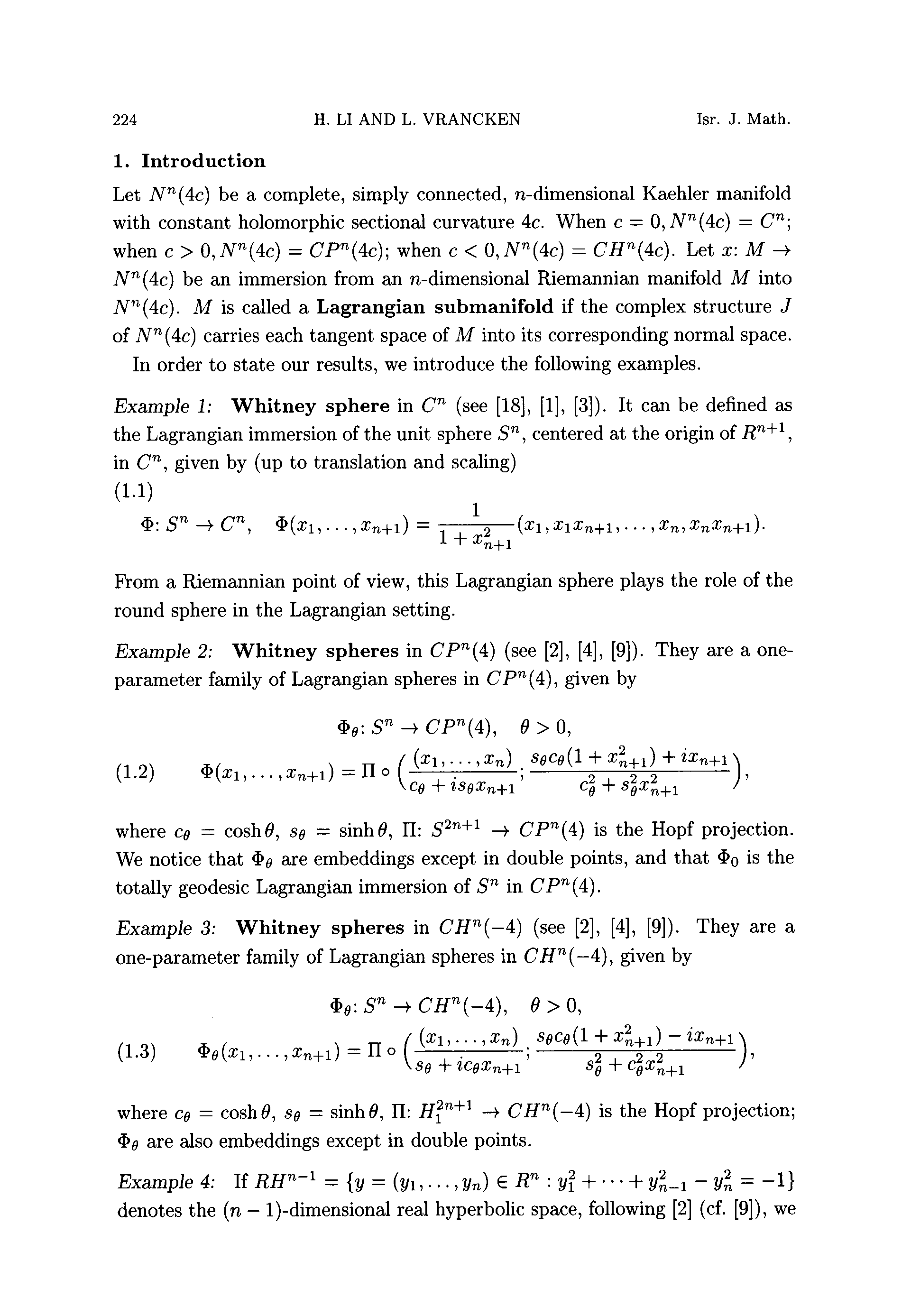 "A basis inequality and new characterization of Whitney spheres in a complex space form" - читать интересную книгу автора (Li H., Vrancken L.)