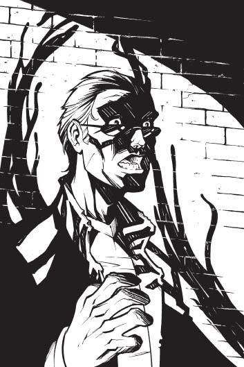 T HE ALLEYWAYS whipped past me as I flew through the narrow passages between buildings. The creature from the other night had preempted me three more times, but I had finally managed to surprise it as it was finished squeezing the life out of some dirtbag with a gun and an ego. Now I was rushing after it, barely keeping up with its lopes and bounds. All I could tell of its figure was that it was huge, twice the size of a normal man, that it had tentacles of some sort hanging from its body, and that its presence felt…familiar. For some reason, the city’s song grew in me when I neared it, as if in recognition. The massive silhouette grunted as it began leaping over a chain-link fence separating two alleyways. I pushed myself, forcing my body to fly faster, putting my fists out in front of me and charging my body with dark energy. “STOP!” I called as I slammed into its back. The creature bellowed, and we exploded through the fence, crashing among newspapers and other wretched detritus. I was on my feet in a second, shaking the impact from my brain. The being appeared like a huge octopus, a lump trailing a mass of black, slimy tentacles. “Can you speak?” I whispered. No answer. Tentatively I reached out my hand to touch the lump- The thing roared and reared back, showing me its full form. Horror filled my heart. It was hard to describe what it was. It distinctly had the form of a human-arms, legs, eyes-but its attributes were hideously bestial. From its face, fingers, chest, knees, there came huge twisting masses of black tentacles, pulsating and grappling-a sewer anemone, if you will. Its face was almost like an insect’s: Two huge segmented eyes stared vacantly at me from a round head, another wriggling mess of black feelers where its mouth should have been. Its form was muscular, but it bent and turned as though it had millions of joints in every part of its body. There was nothing fluid about its posture or movement; it seemed to twitch its way around things rather than actually walk or crawl. As a being, an existing entity, it was just not right. “My God…,” I whispered. The monster responded by sending one of its massive claws smashing into my head. I felt my body, limp and helpless, hit a brick wall. Red dust and blinding light filled my vision, and I stumbled, trying to regain my footing. When I looked up, the thing had disappeared into the night. Whatever the monster was, it was dangerous. And if it could hurt me, something was wrong. Somehow it had found a way to access the city’s negative energy as well. It had powers similar to mine. Next time. Next time I would be ready for it. |