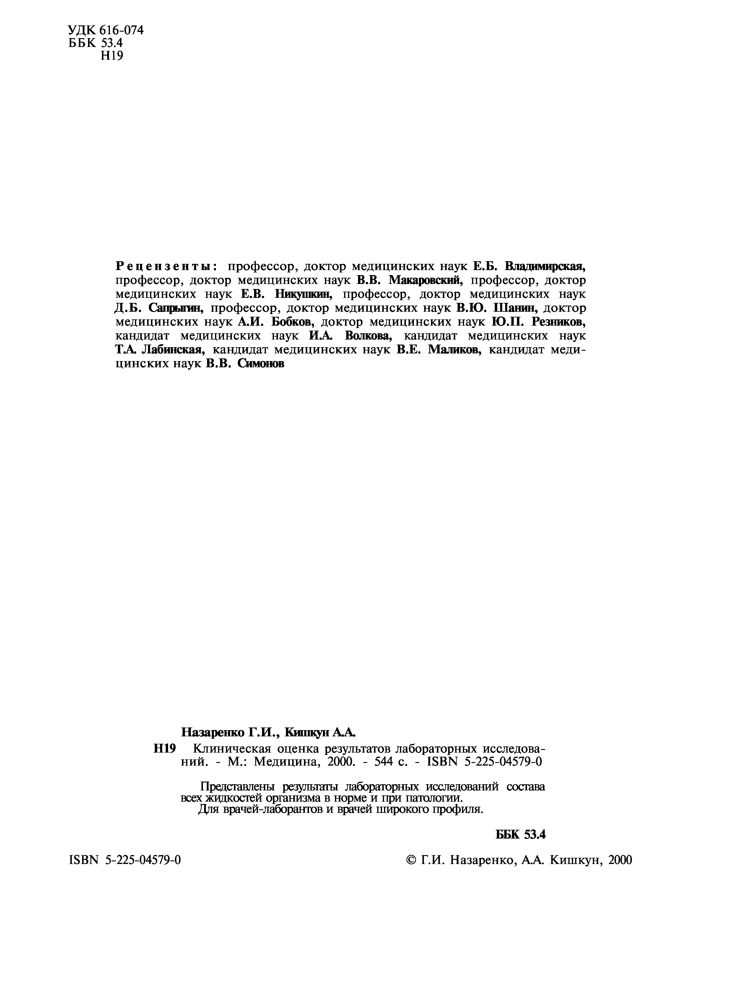 (Назаренко Г.И., Кишкун А.А.)