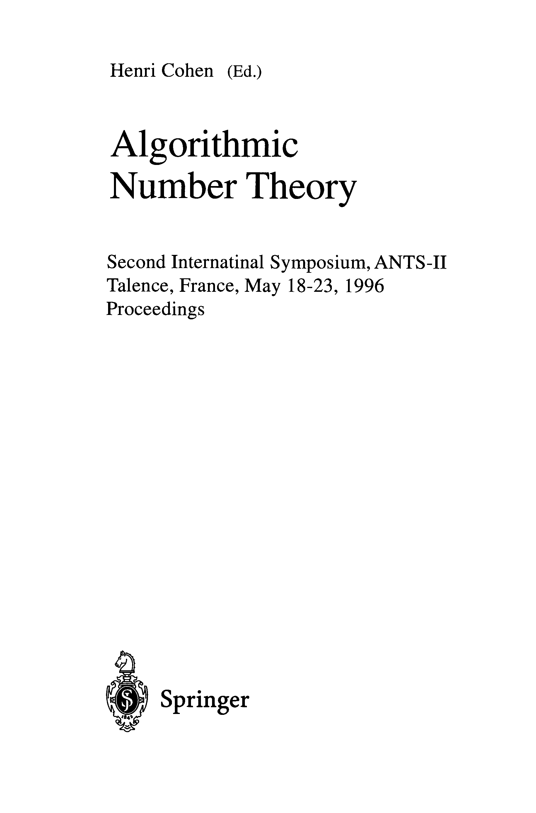 "Algorithmic Number Theory 2 Symposium" - читать интересную книгу автора (Henri Cohen)