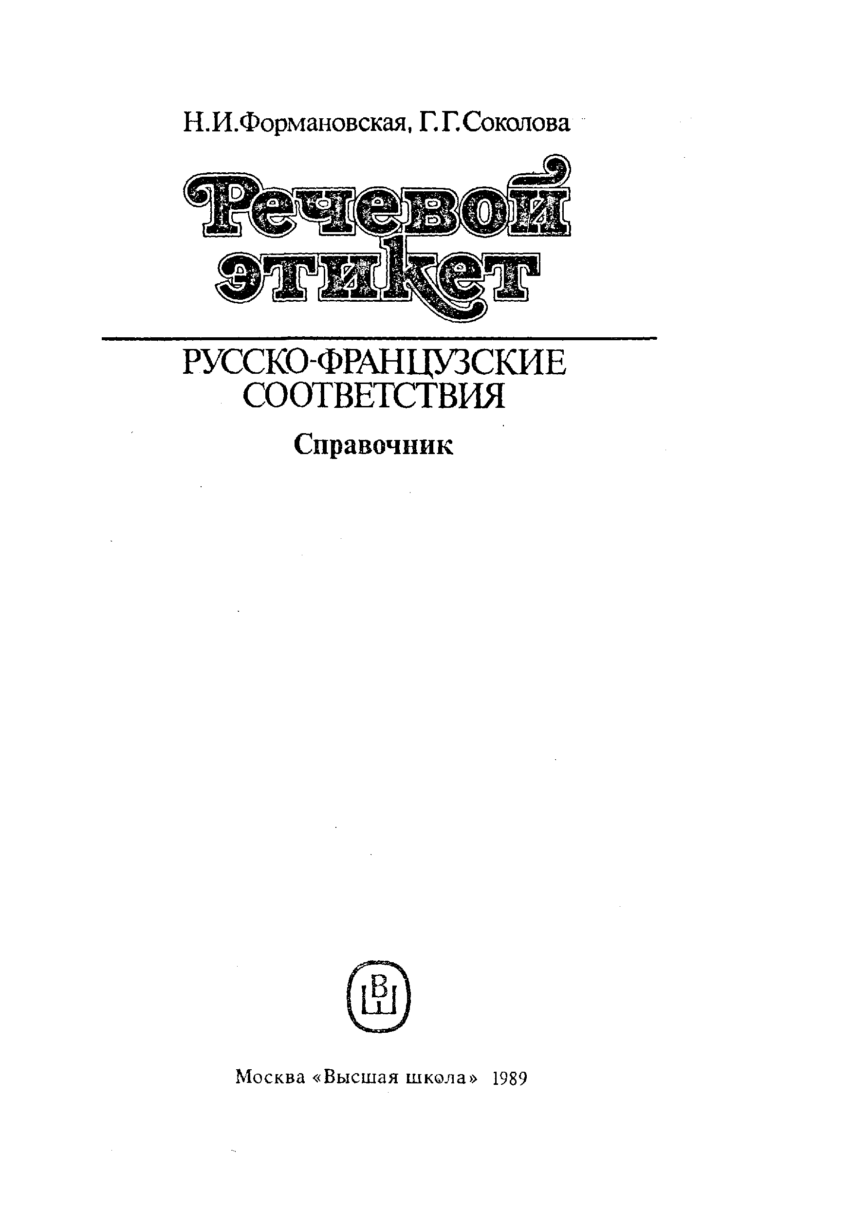 "Речевой этикет. Русско-французские соответствия. Справочник" - читать интересную книгу автора (Н. И. Формановская, Г. Г. Соколова)