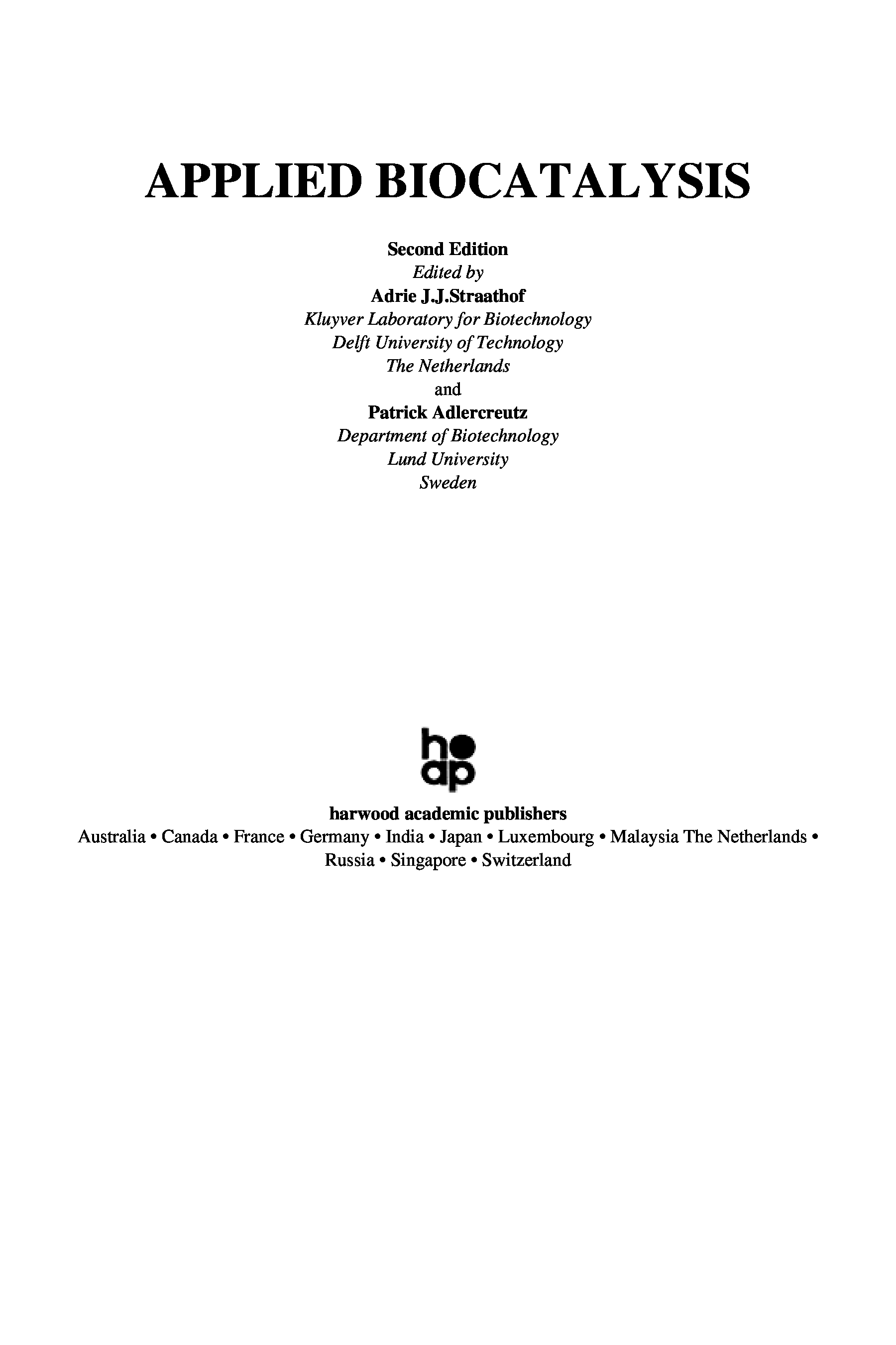 (Patrick Adlercreutz,Adrie J J Straathof,NetLibrary, Inc.)