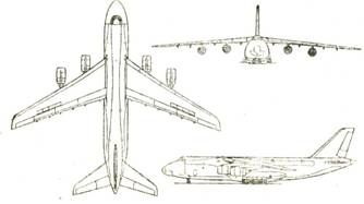 Грузовой отсек герметизирован. Над грузовым отсеком имеется пассажирская кабина, способная вмещать 88 человек. Имеются носовая и кормовая грузовые рампы, средства механизации погрузочно- разгрузочных операций (в частности, два тельфера грузоподъемностью по 20 000 кг). Шасси самолета позволяет менять стояночный клиренс и угол наклона фюзеляжа, что облегчает проведение погрузочно- разгрузочных работ.