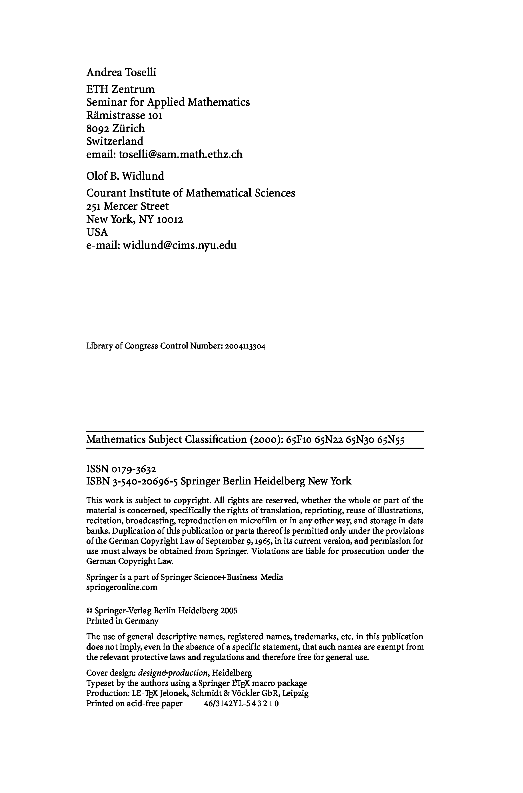 (Andrea Toselli, Olof Widlund)