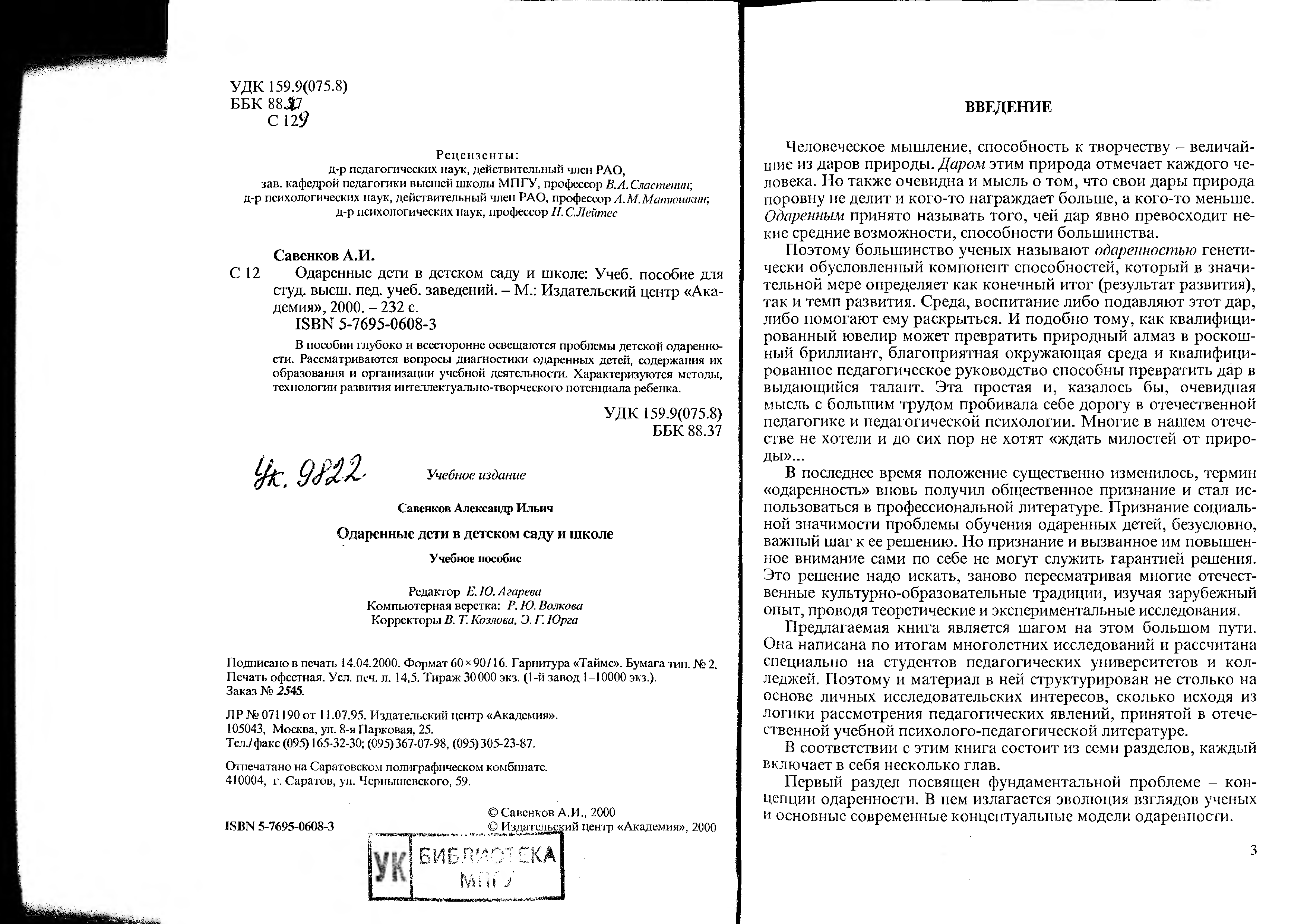 "Одаренные дети в детском саду и школе: Учебное пособие для студентов высших педагогичсеких учебных заведений" - читать интересную книгу автора (Савенков А.И.)