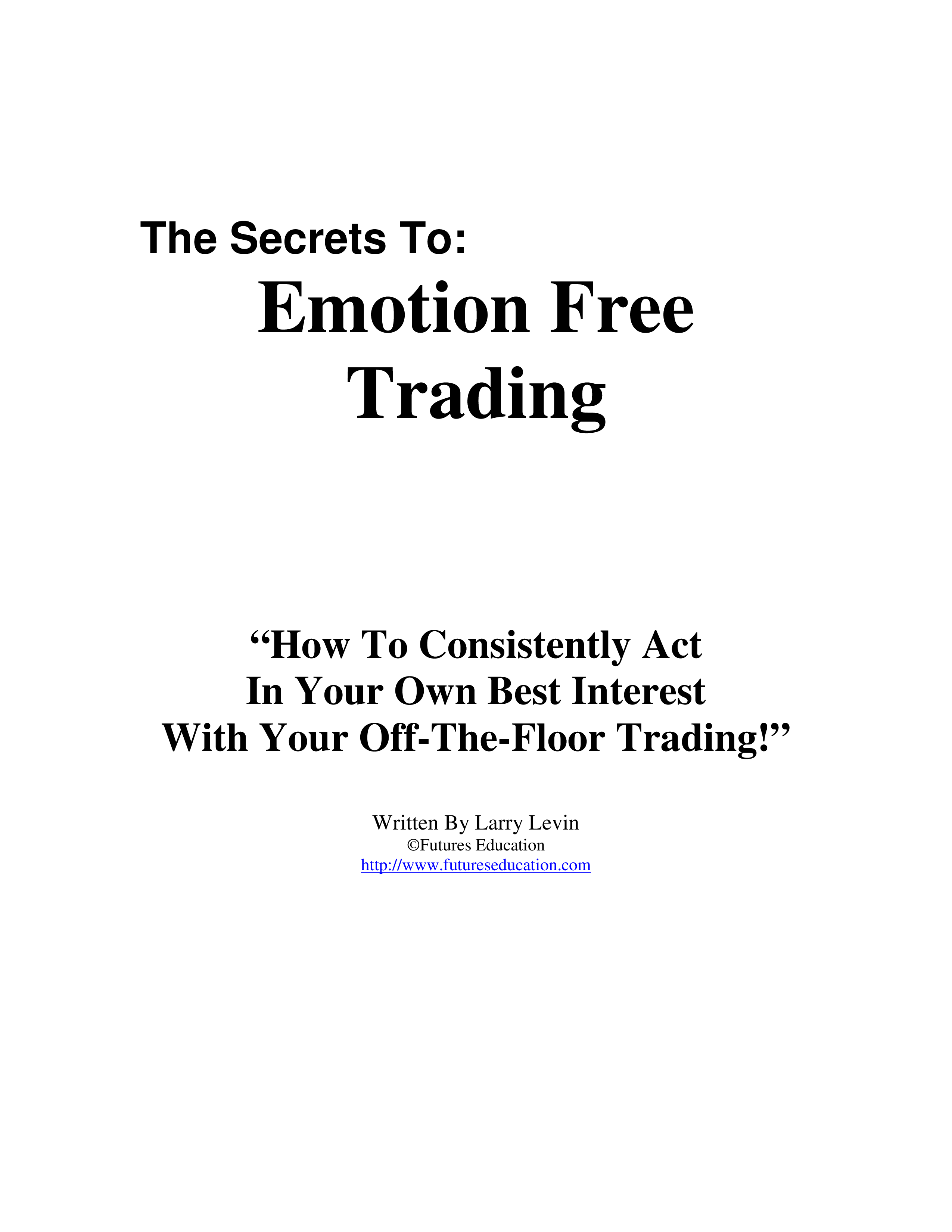 "The Secrets To Emotion Free Trading" - читать интересную книгу автора