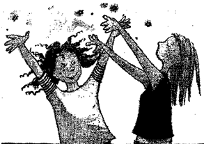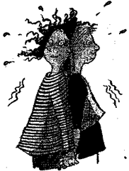 — Шутишь! — Похоже, Лисси не обрадовалась. — А ты видела сон? Тинка кивнула и сделала при этом жалобное лицо. Какой? Лучше я не буду рассказывать об этом! — Тинка очень надеялась, что ее сон не сбудется. А если все-таки сбудется? Как заправские колдуньи, Лисси и Тинка наколдовали себе спагетти с томатным соусом. Правда, они все еще не понимали, как из таинственного «холодильного» отверстия получаются макарончики, да не простые, а с пылу с жару. Это было одно из многочисленных и непостижимых чудес, творящихся в доме колдуньи. Дом окружал большой запущенный сад. В его задней части госпожа Шикетанц разбила грядки. На них вперемежку буйно разрослись цветы и овощи. Между грядками располагалась небольшая круглая терраска, в центре которой разместились маленький столик с мра морной столешницей и металлические стулья, вроде тех, что стоят в кафе-мороженом. Девочки принесли еду в сад и жадно на нее набросились. — Вкуснятина, — довольно вздохнула Лисси, похлопывая себя по животу. И Тинка с ней согласилась. Без мальчишек здесь как в раю, — заметила Лисси. В школе ты обмолвилась, что их надо... превратить в лягушек, — выпалила Тинка и в следующий же миг пожалела о своих словах. Лисси вскочила как ужаленная и ринулась в дом, чтобы поискать подходящую колдовскую книгу. Тинка бросилась за ней. Слушай, не будем этого делать! Это невозможно! — тараторила она. Это возможно, Тиночка, и мы это сделаем, — обнадежила сестру Лисси и г довольно потерла руки. — Превратить братцев в лягушек — это лучшая идея посетившая меня за последние десять Это совершенно невозможно, — не унималась Тинка. — Если можно наколдовать, чтобы полтонны угля оказалось на четвертом этаже, то квакающие братья — просто детская игра, — засмеялась Лисси. Тинка вспомнила про книгу в переплете из шерсти. В ней содержались именно такие заклинания, и она ни за что не должна была попасть в руки Лисси. Тинка высмотрела ее среди других книжек, схватила и хотела спрятать. Но Лисси заметила это, и между сестрами завязалась потасовка. Отдай, зануда, книга принадлежит нам обеим, — шипела Лисси сквозь стиснутые зубы. У нас нет опыта, — гнула свое Тинка, вцепившись в книжку обеими руками. Чепуха! Чего ты боишься? Ну, превратятся они не в лягушек, так в тараканов. Ни одна из них не собиралась уступать. Лисси ухватилась за одну страницу, Тинка — за другую. И тогда они увидели, что шерсть на книжном переплете встала дыбом, как на собаке, почуявшей врага. Энергичным движением книга высвободилась из рук соперниц, схватила Тинку за руку, больно прищемив ей палец, и с грохотом приземлилась на пол. Лисси отступила назад и с почтением взирала на очередное чудо. Руки она на всякий случай спрятала за спину. Охая от боли, Тинка глядела на палец, который распухал прямо на глазах. — Может быть, он сломан, — всхлипнула она и с укором посмотрела в сторону Лисси, Но сочувствия не дождалась. — Да ладно тебе, — бросила Лисси, даже не взглянув на палец. — Классно! От обиды Тинка не сдержала слез. Крупные капли покатились по ее щекам, и она прошипела: — Ну и дрянь же ты. — Не переживай, палец же на месте. — А вот ты, похоже, осталась без мозгов! — взвилась Тинка. Лисси подняла глаза на сестру и метнула в ее сторону яростный взгляд: А ну повтори, что ты сказала! ...лишилась последних мозгов. — Жирняга! — бросила Лисси в Тинкино заплаканное 
