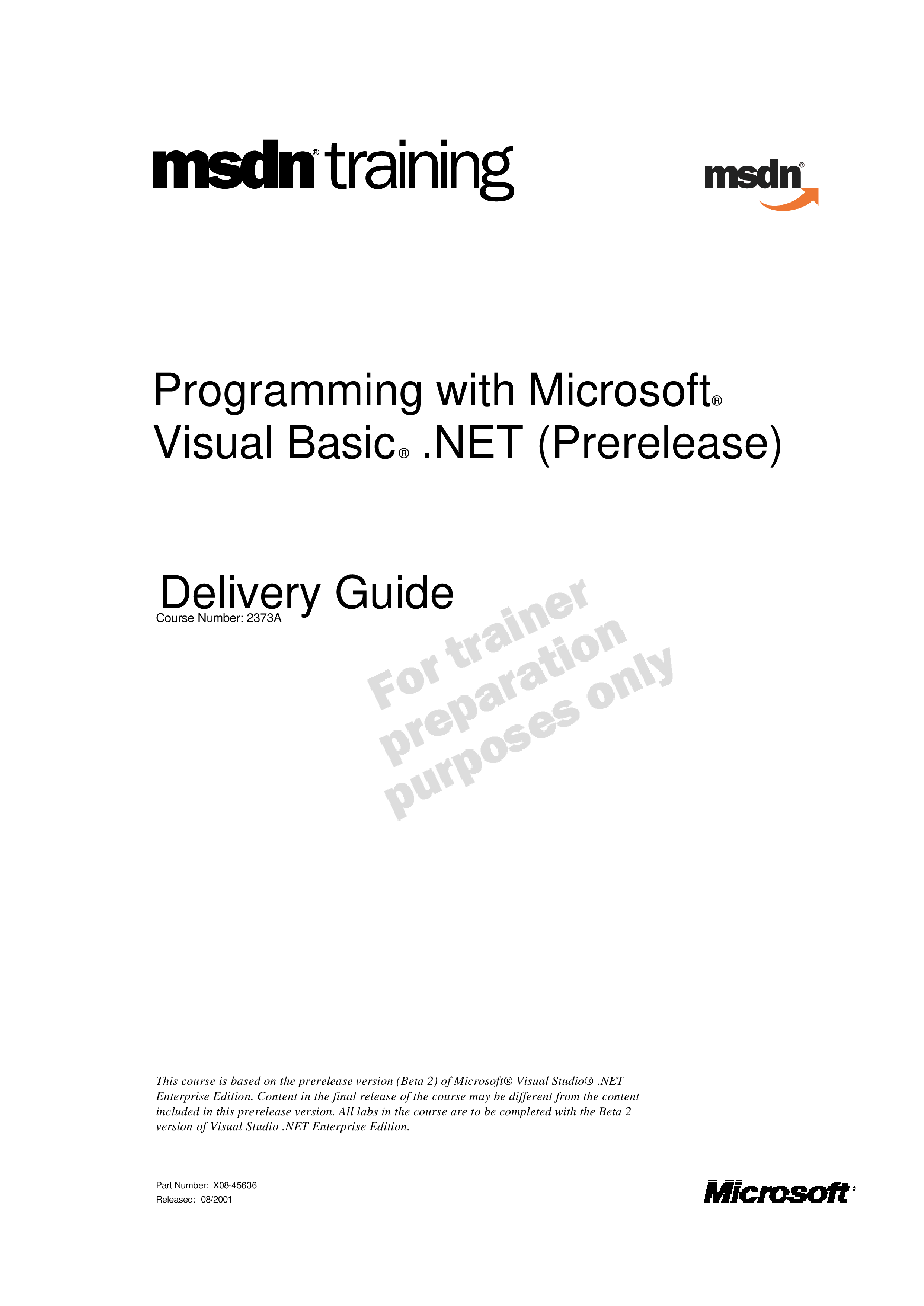 "VB NET - Programming with Microsoft Visual Basic NET Delivery Guide" - читать интересную книгу автора