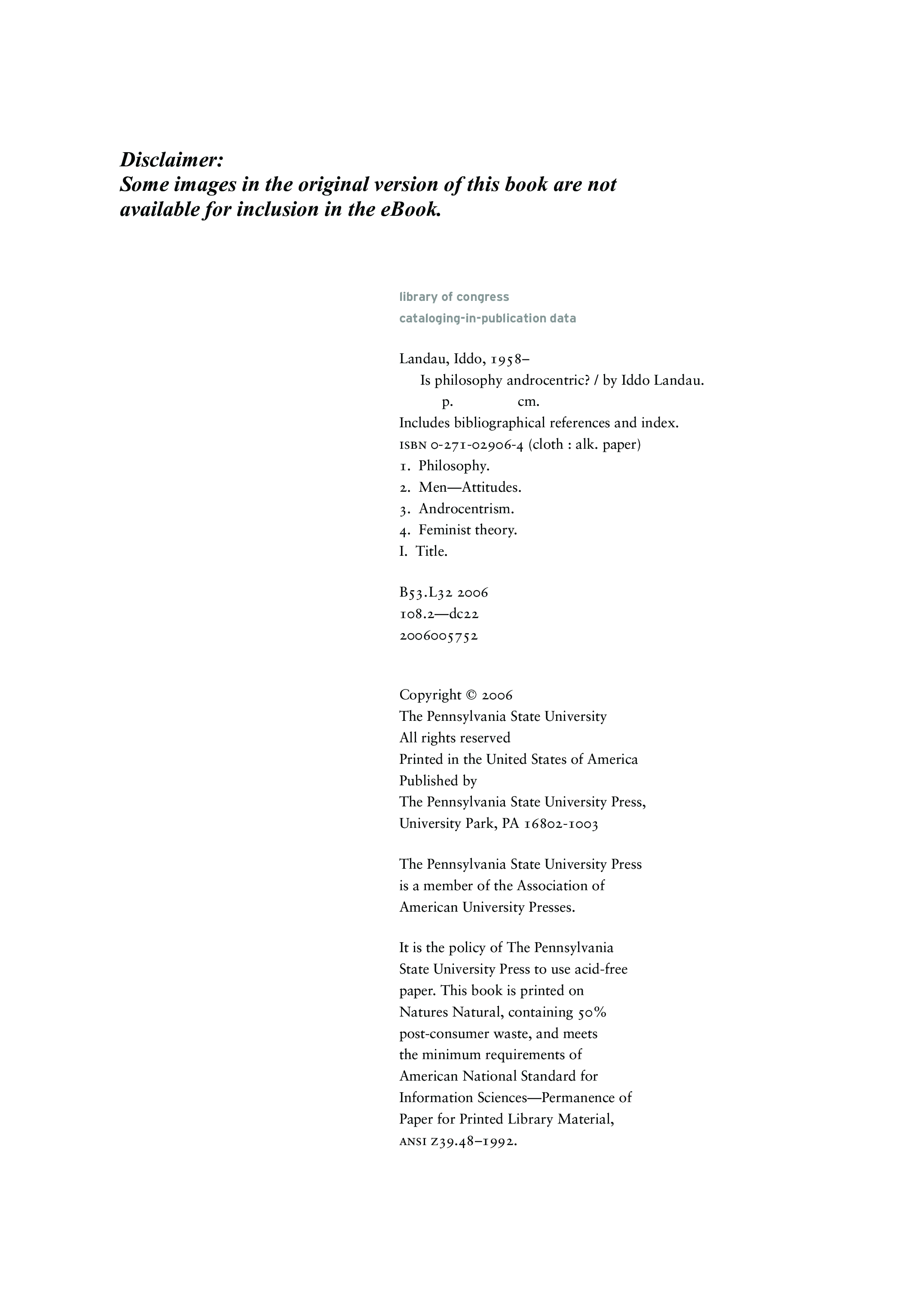 "Is Philosophy Androcentric?" - читать интересную книгу автора (Iddo Landau)