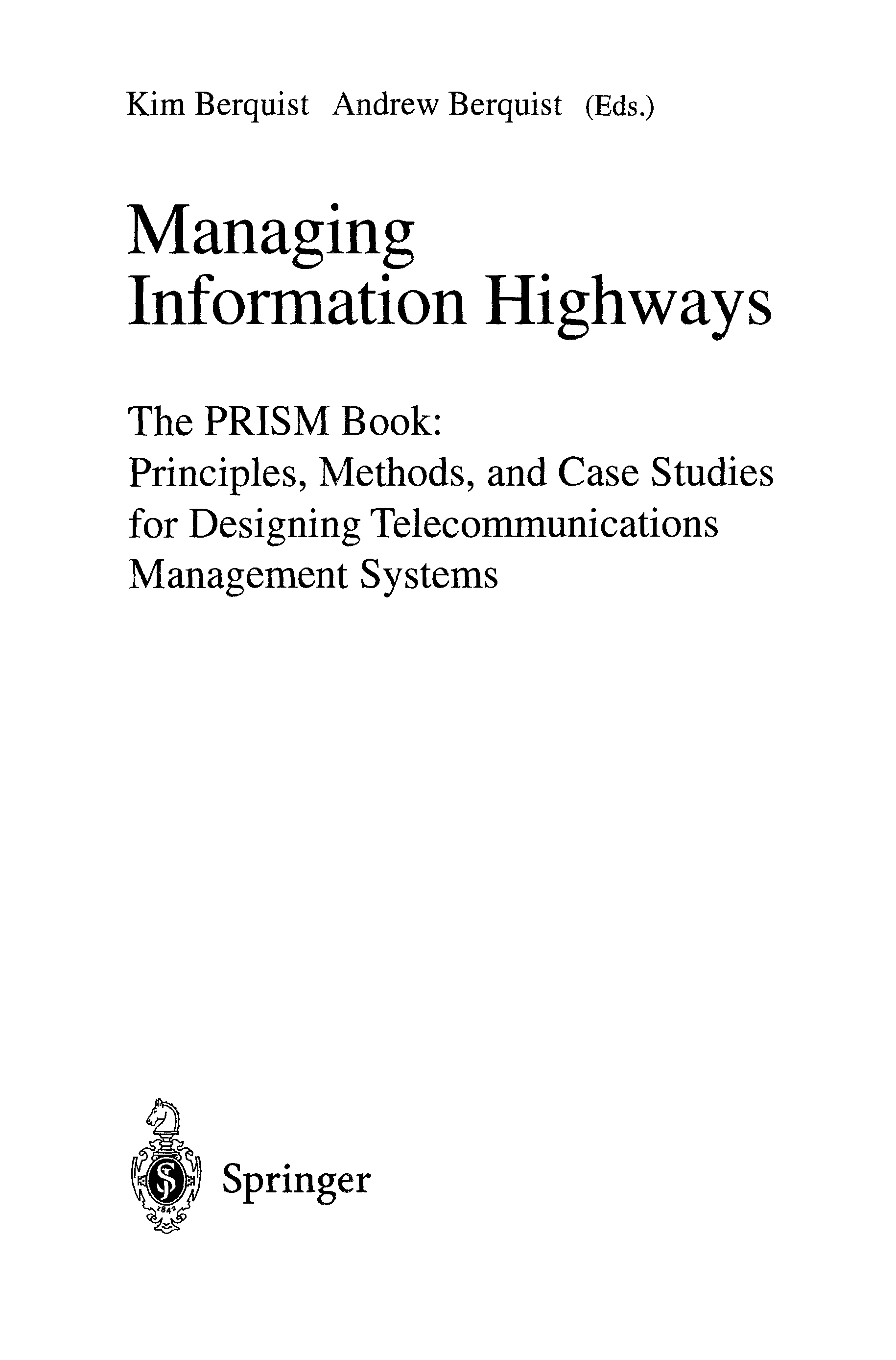 "Managing Information Highways - The PRISM Book.. Principles" - читать интересную книгу автора (Kim Berquist)