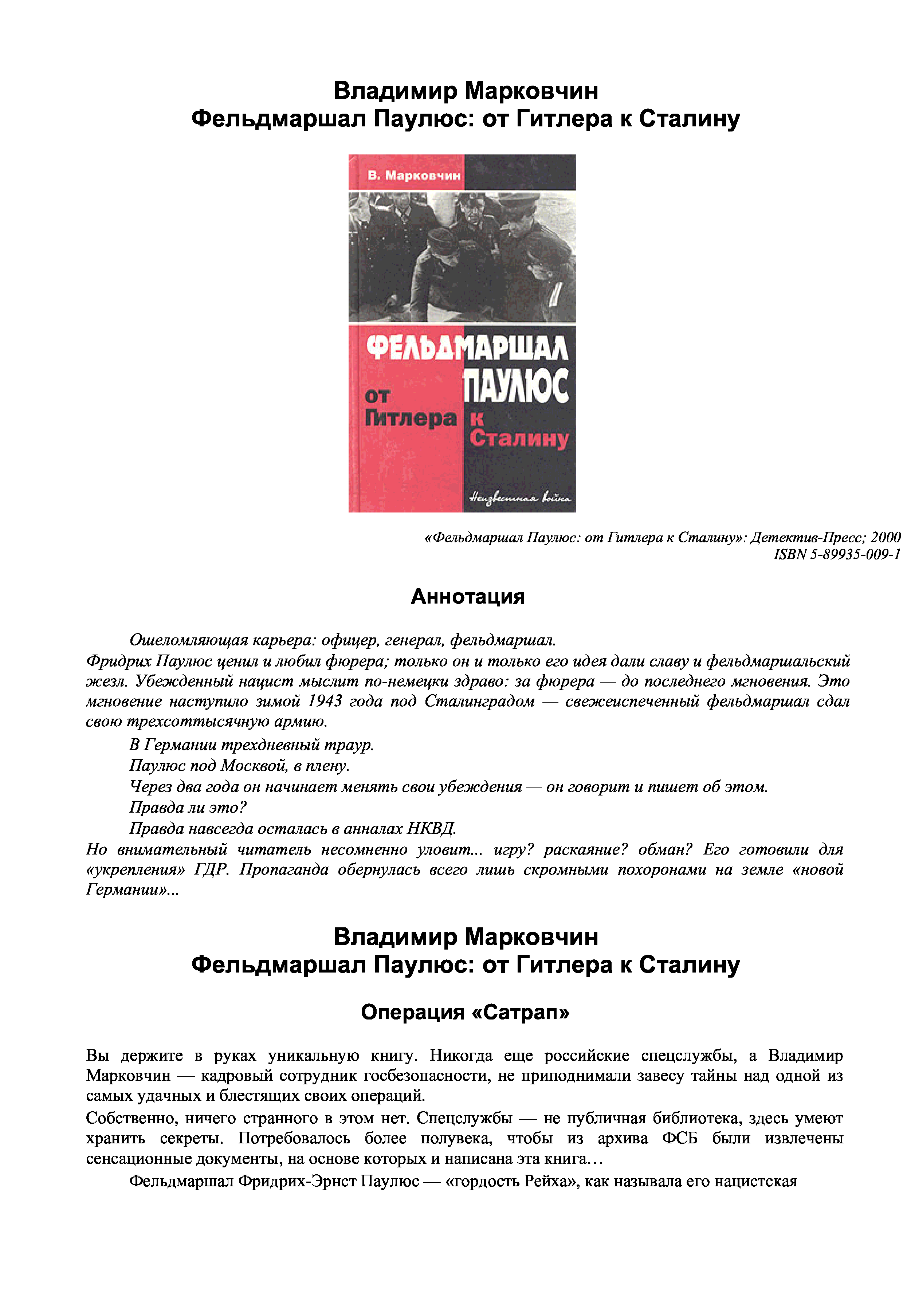 "Фельдмаршал Паулюс от Гитлера к Сталину." - читать интересную книгу автора