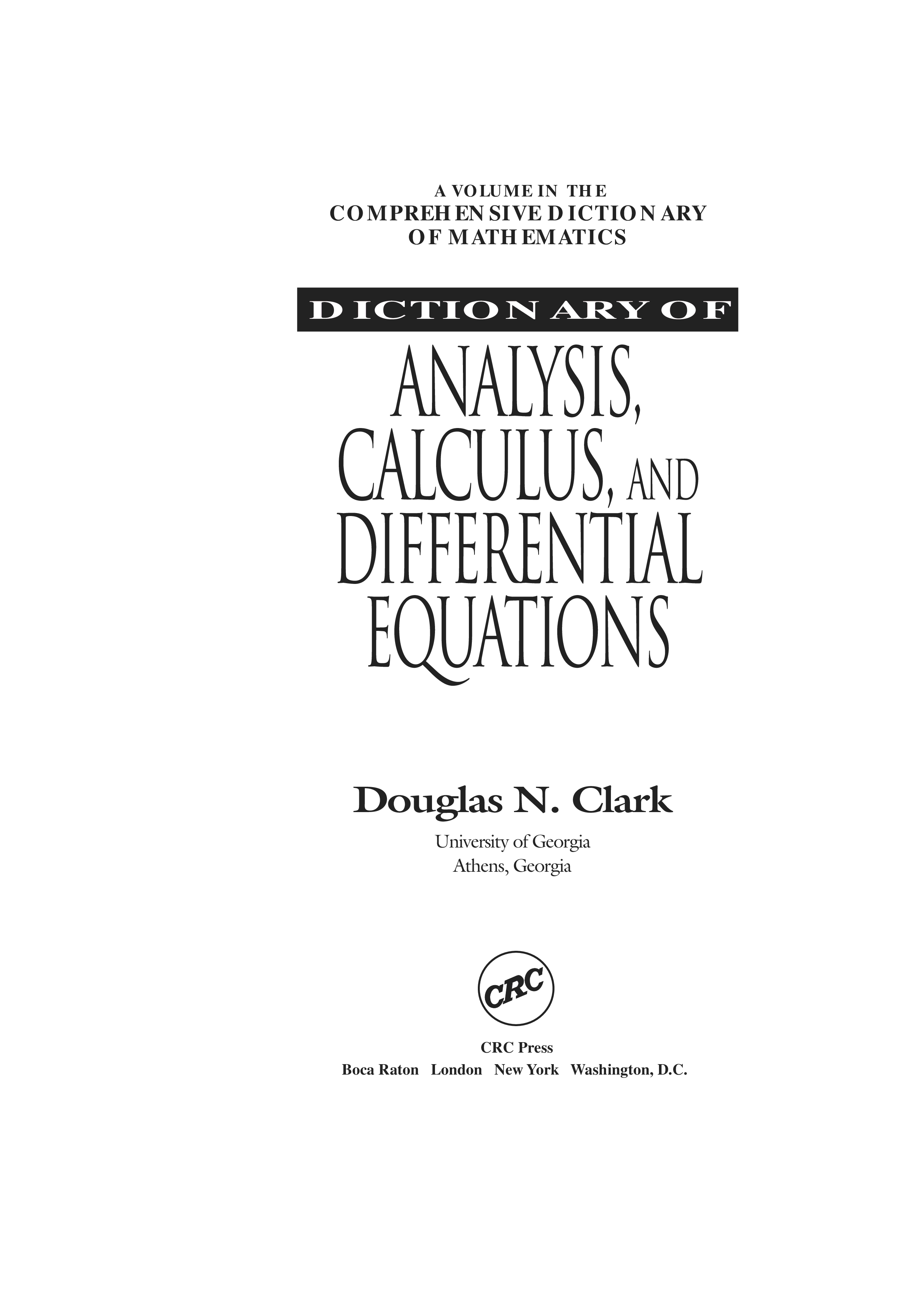 "Dictionary of Analysis, Calculus, and Differential Equations" - читать интересную книгу автора (Richard A. Matzner)