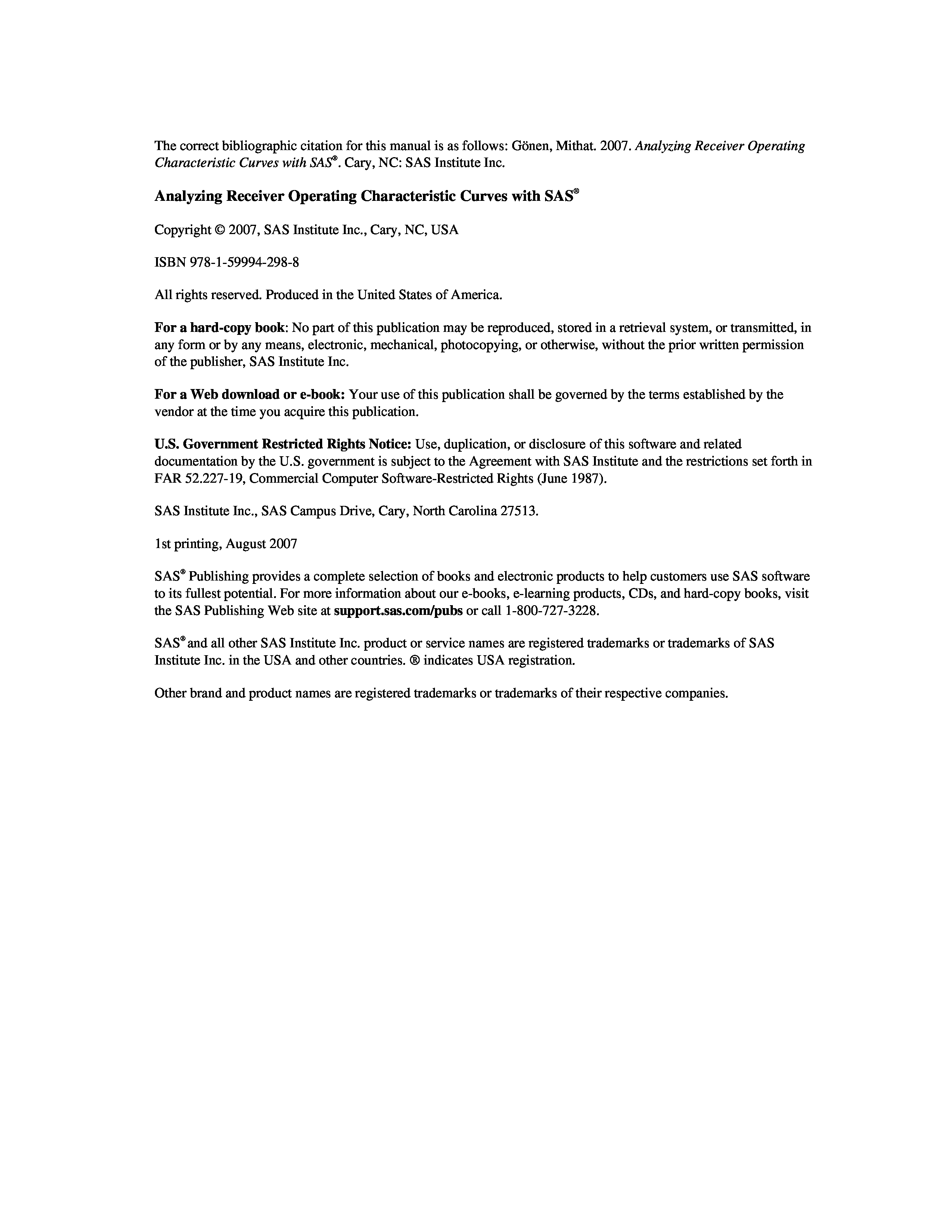 "Analyzing Receiver Operating Characteristic Curves With SAS" - читать интересную книгу автора