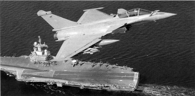 Во второй половине июля 2008 г. в районе Восточного побережья США состоялись крупные морские учения JTFEX-08 (Joint Task Force Exercise 2008), в которых приняли участие свыше 15000 военнослужащих из США, Франции и Великобритании, а также большое число боевых кораблей и самолетов. Учениями было охвачено пространство от Флориды до штата Виргиния. Активное участие в маневрах JTFEX-08 принял американский атомный авианосец CVN-71 «Теодор Рузвельт», на борту которого базировались палубные истребители ««Рафаль»» М из состава эскадрильи 12F французских ВМС. Первые три истребителя ««Рафаль» М вылетели в США 26 июня 2008 г. После встречи с самолетом- заправщиком над югом Франции они взяли курс на Азорские острова. Весь перелет занял 4 ч. На следующий день другая тройка самолетов повторила маршрут. 28 июня вся шестерка вылетела на авиабазу ВМС США Океана (шт. Виргиния), куда прибыла спустя 6,5 ч. Во время перелета через Атлантику самолеты дважды пополняли запас топлива от самолетов-заправщиков. До перелета на «Теодор Рузвельт» французские летчики 15 дней провели на морской авиабазе Океана, где отрабатывали методы посадки на палубу. Из Франции истребители вылетели с тремя ПТБ емкостью по 1250 л (используются для перегоночных полетов) и парой УР MICA на концах крыла. Технический персонал прибыл в Океану на самолете Эрбас А340, а различное оборудование было доставлено на борту арендованного самолета Боинг 747-400F. Вместе с самолетами ««Рафаль» М на бгрту авианосца находились два палубных самолета ДРЛОУ Е-2 «Хоукай» из состава эскадрильи 4F. Полеты французских самолетов с борта авианосца начались 18 июля. За первые четыре дня «Рафаль» М и «Хоукай» выполнили 153 взлета с катапульт. В среднем каждый «Рафаль» М ежедневно совершал 12 вылетов: четыре раза выполнялись удары по наземным целям с помощью КАБ GBU-12 и лазерных КАБ AASM, четыре раза на задания по обеспечению превосходства в воздухе и четыре раза обеспечивалась непосредственная поддержка наземных войск. Всего до 31 июля истребители «Рафаль» М более 400 вылетов. За все время летных испытаний опытных самолетов «Рафаль» и начального периода эксплуатации не было ни одного официального объявления о каких-либо авариях или катастрофах. Первое летное происшествие с самолетом произошло 6 декабря 2007 г. В этот день два истребителя «Рафаль» В из состава эскадрильи ЕС 1 /7 выполняли совместный полет на высоте 4000 м. Внезапно один из самолетов исчез с экранов радаров. Позднее обломки самолета нашли в труднодоступной местности недалеко от Клермон-Феррана. Летчик погиб. Второе летное происшествие произошло 22 мая 2008 г. во время посадки палубного самолета «Рафаль» М на авиабазу в Ланн-Биу. Из-за потери контакта с автоматической системой посадки ILS самолет коснулся ВПП на расстоянии около 100 м дальше положенного места. Понимая, что самолет остановить на ВПП не удается, летчик катапультировался. Покинутый самолет выкатился за пределы ВПП и остановился, не получив серьезных повреждений. Летчик был доставлен в больницу, где никаких травм не зафиксировали. 24 сентября 2009 г. во время тренировочного полета над Средиземным морем в 30 км восточнее Пер- пиньяна (департамент Восточные Пиренеи) столкнулись два палубных истребителя «Рафаль» М, взлетевшие с атомного авианосца «Шарль де Голль». Сразу после падения самолетов в море спасательный вертолет поднял одного ле