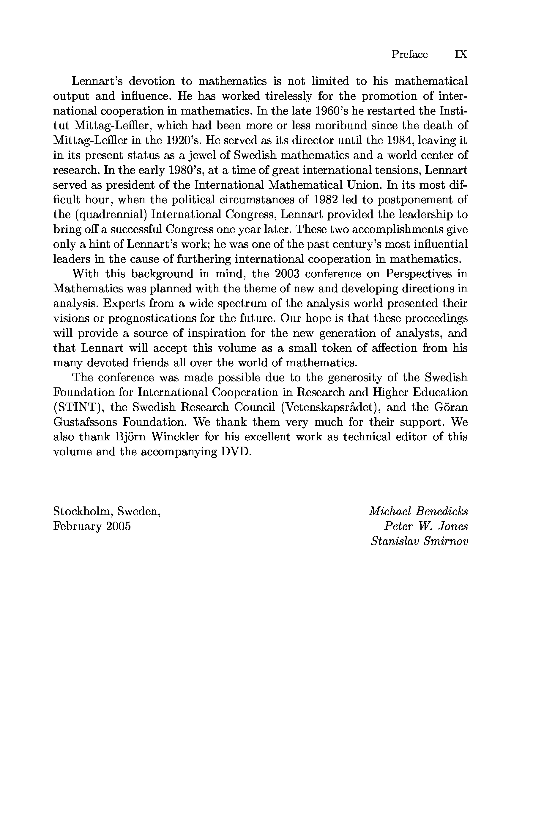 (Björn Winckler, Michael Benedicks, Peter W. Jones, Stanislav Smirnov)