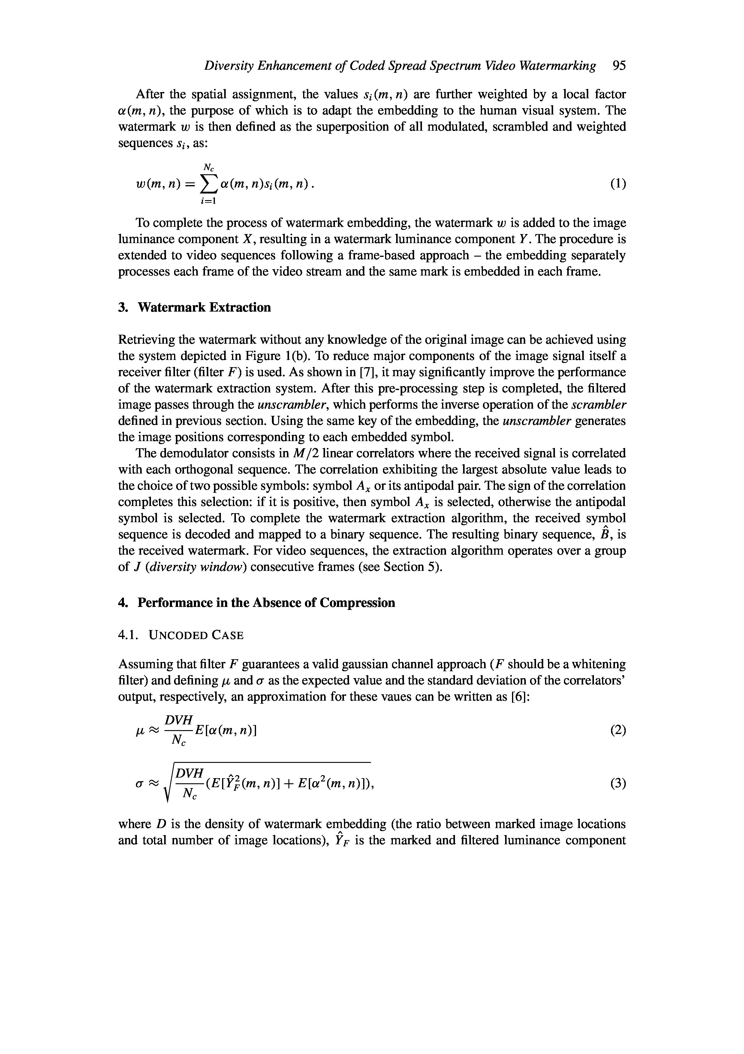 "Diversity Enhancement of Coded Spread Spectrum Video Watermarking" - читать интересную книгу автора