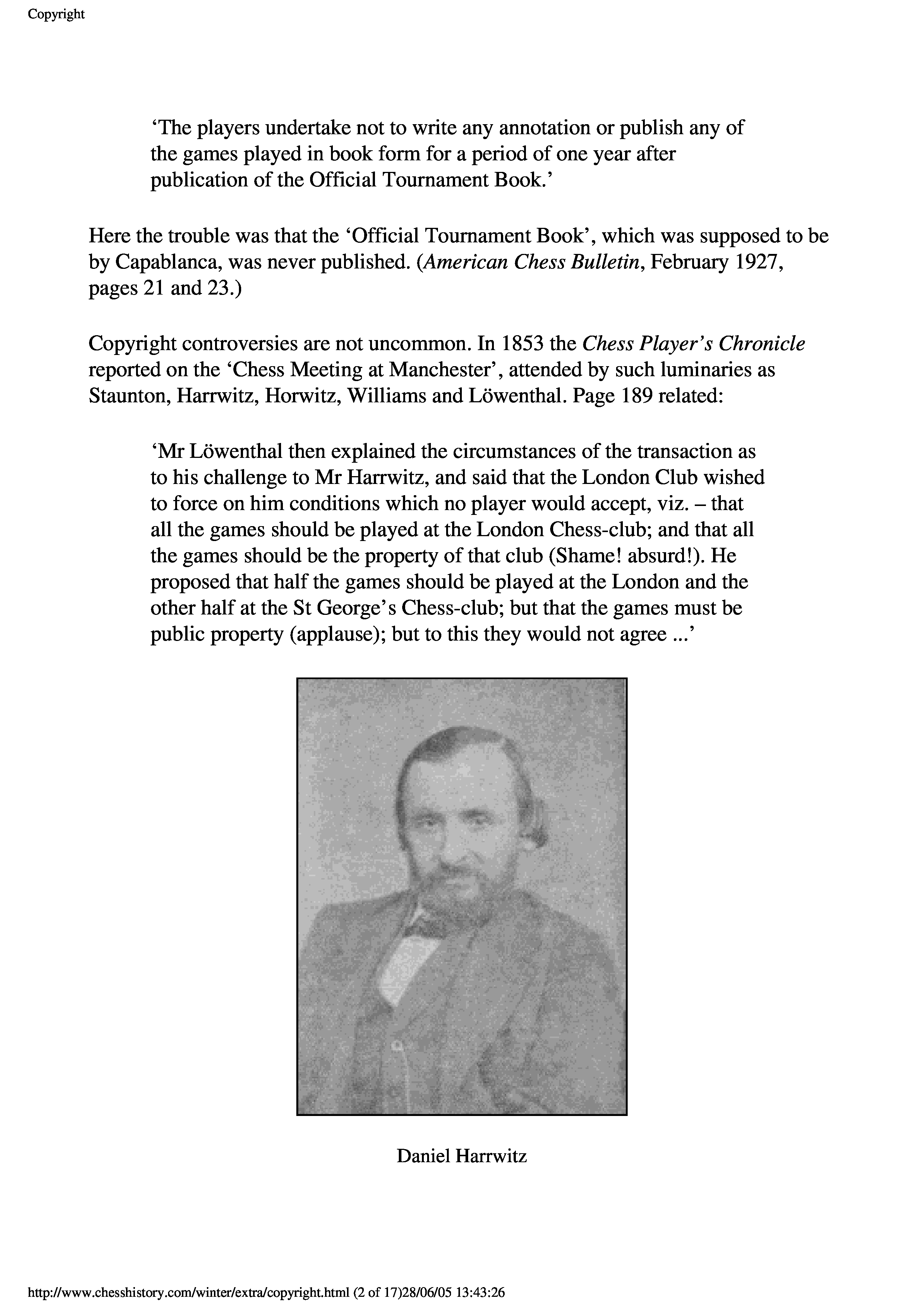 "Copyright on Chess Games" - читать интересную книгу автора (Edward Winter)
