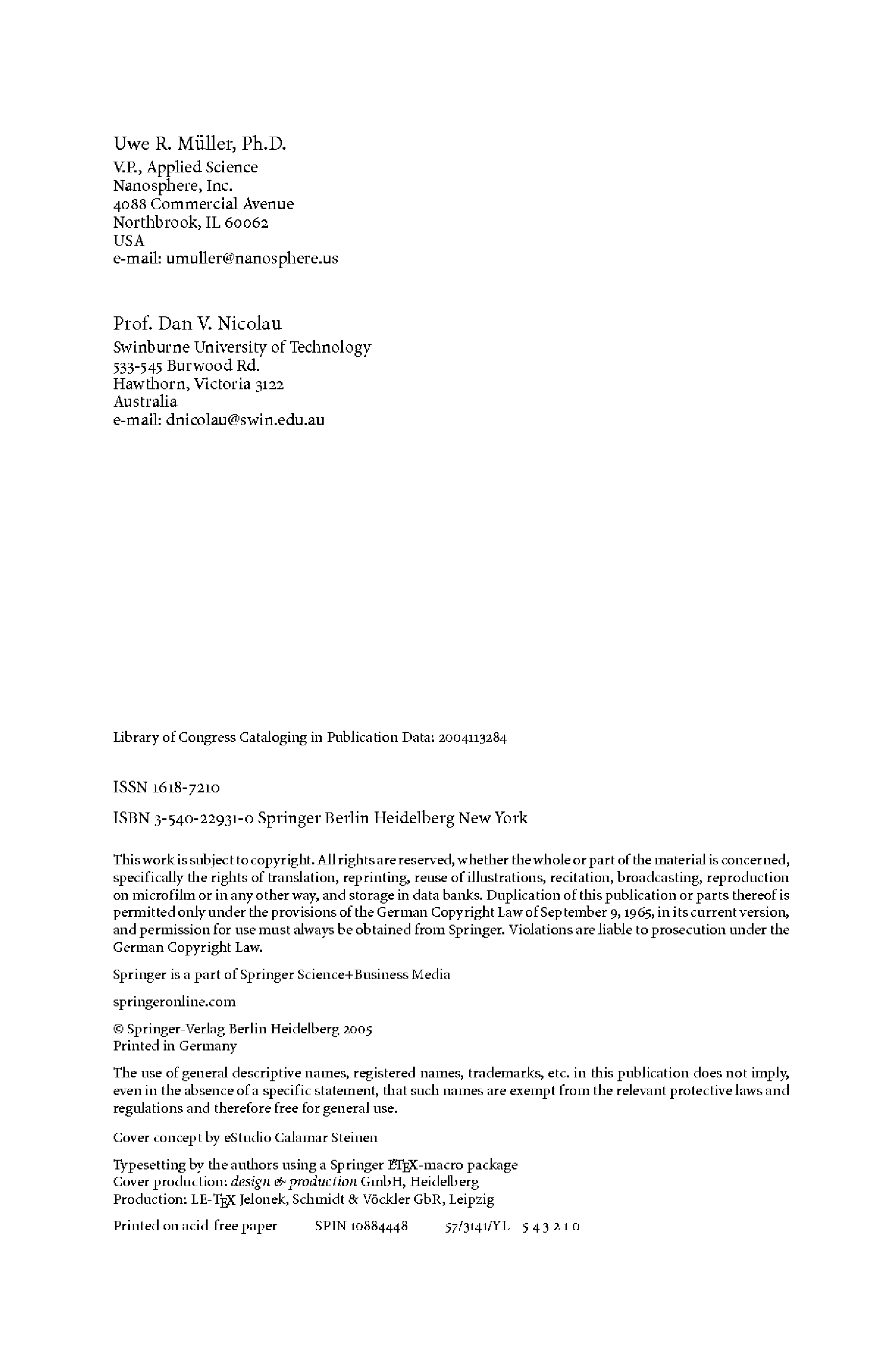 (Uwe R. Müller, Dan V. Nicolau)