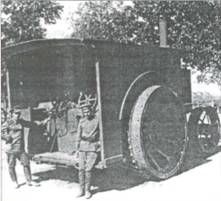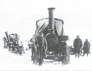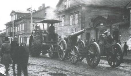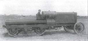 Тракторы гусеничного типа требуются в меньшем количестве. Они наиболее применимы при перемещении тяжелых орудий, что необходимо, главным образом, при осаде крепостей. Прочие тракторы имеют крайне ограниченное применение и для выполнения боевых задач непригодны». С учетом этих указаний 21 января 1915 г. ГВТУ вошло в Военный совет с представлением за №317/298 «О заготовке самодвижущихся повозок для удовлетворения предстоявшей потребности в них действующей армии» и определило эту потребность в большем размере, чем это сделал Генеральный штаб. Разница объяснялась тем, что Генеральным штабом не было предусмотрено решение о формировании «14 тяжелых батарей с 6-дюймовыми скорострельными орудиями Шнейдера, для каковых батарей, согласно представления ГУГШ в Военный совет от 22.12.1914 г. за №5337 требовалось: 35 легковых автомобилей, 126 тракторов, 84 грузовика, 14 цистерн, 14 мастерских и 14 кухонь». Принимая это во внимание, Главное военно-техническое управление сочло необходимым закупить дополнительно 278 тракторов для артиллерии. 15 апреля 1915 г. ГВТУ внесло в Военный совет представление за №1659/1838, в котором предписывалось приобретение еще 65 тракторов. В конце 1915 г. в 1-й Запасной тяжелый артиллерийский полк, квартировавший в Царском Селе, начали поступать английские паровые тракторы «Фоулер», повторявшие в общих чертах конструкцию дорожных локомотивов времен Русско-турецкой войны 1877-1888 гг. Эти громоздкие машины весом 950 пудов и мощностью 48 л.с. предназначались для транспортировки заказанных в Великобритании 8- и 12-дюймовых гаубиц «Виккерс». Весной 1916 г. паровые тракторы «Фоулер» были успешно испытаны на перевозках артиллерийских грузов по маршруту Царское Село – Гатчина, а летом три машины совершили испытательный пробег на 320 верст по маршруту Царское Село- Новгород – Царское Село. Осенью 1916 г. эти же три «Фоулера» транспортировали 12-дюймовую батарею из Царского Села в Красное Село, где планировалось провести учебные стрельбы. Однако, пройдя всего лишь около шести верст, дорожные паровозы безнадежно застряли в глубоком снегу – никакими силами их вытащить не удалось. Простояв на заснеженном шоссе всю зиму, «Фоулеры» продолжили движение только в апреле 1917 г., когда растаял снег и высохли дороги. Несмотря на некоторые достоинства паровых тракторов (надежность и простота конструкции, мощная тяговая сила), недостатков у них было все же больше – тяжелый вес, плохая проходимость, необходимость каждые 5-10 верст заправляться водой, длительный (до 1 ч) разогрев котла перед началом движения. Все эти факторы не позволили эффективно задействовать дорожным паровозам в боевой обстановке. Однако летом 1917 г. четыре батареи 12-дюймовых гаубиц «Виккерс» (по две гаубицы в каждой) были отправлены на фронт вместе с паровыми тракторами «Фоулер». Для перевозки одной такой гаубицы в разобранном виде требовалось шесть тракторных поездов с прицепами. Пять паровых «Фоулеров» тогда же направили в Черновцы в распоряжение инженерных частей для перевозки электрического кабеля. С 1916 г. начались поставки колесных тракторов с двигателями внутреннего сгорания на службу в полевые артиллерийские батареи и дивизионы. Тогда же в Русской армии появились и гусеничные тракторы. Для подвозки боеприпасов и транспортировки орудий в полевой и крепостной артиллерии применялись и обы