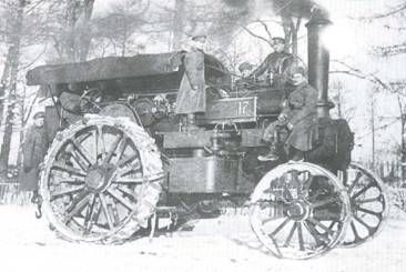 Личный состав тракторной роты включал в себя десять офицеров, пять военных чиновников и 324 нижних чина. По штату роты должны были иметь в своем составе четыре взвода с материальной частью: 16 основных тракторов и четыре запасных, четыре трактора, оборудованные в ремонтные «летучки», четыре трактора с цистернами для горючего и 32 прицепные тележки (по две на каждый основной трактор). Для обслуживания тракторов предусматривались вспомогательные парки – взводный и ротный. К взводному парку предписывались два грузовика, один легковой автомобиль для командира и один мотоцикл для связи. В ротном вспомогательном парке должны были находиться четыре легковых машины, два грузовика для перевозки запасных частей, четыре грузовика для перевозки ротного имущества, две автомобильных цистерны и четыре мотоцикла для службы связи и регулирования движения. В мае 1917 г. две тракторные роты были созданы. Однако вскоре, ввиду нехватки материальной части, их расформировали. Использование громоздких паровых тягачей в артиллерии себя не оправдало, хотя английские машины «Фоулер», «Маршал» и «Мак-Ларен» применялись до конца войны. Наибольшее распространение в армии (в основном в артиллерийских частях) получили паровые тракторы производства английской фирмы «Фоулер» с топкой, работающей на сырой нефти. Многие из них приобретались через торговую агентуру «Виккерс- Армстронг» для перевозки тяжелых гаубиц производства этой же фирмы и в русских документах тех лет проходили под названием «Виккерс». Всего за годы войны Россия получила около 200 паровых тягачей, в числе которых было и несколько машин отечественного производства, изготовленных на Коломенском машиностроительном заводе (КМЗ). Более эффективным оказалось применение тяжелых колесных тракторов, оснащенных двигателями внутреннего сгорания. В артиллерии было достаточно много американских машин «Кейс», «Румели Ойл Пулл», «Гарт-Парр», мощных тракторов «Могул» и «Титан» производства Международной компании жатвенных машин («Интернационал Харвестер»). Кроме того, использовались и тяжелые тягачи, занимавшие нишу между тракторами и автомобилями (грузовики-тракторы), в том числе и полноприводные – американских фирм «Дуплекс», «ФВД», «Вальтер», «Нокс», «Росс», «Чикаго» и французских «Шнейдер», «Лятиль» и «Панар-Левассор». Больше всего Главное артиллерийское управление закупило американских тракторов «автомобильного» типа с приводом на все колеса «Мортон» – около 250 единиц. Однако эти 60-сильные тракторы оказались не очень надежными и часто выходили из строя, из-за чего их применение на фронте было ограниченным. «Мортоны» служили в шести батареях для перевозки 8-дюймовых гаубиц «Виккерс» и в двух батареях 120/50-мм пушек производства Обуховского завода. Автомобили-тракторы марки «ФВД» поступали в 1-й тракторный дивизион, имевший на вооружении 6-дюймовые гаубицы «Виккерс».