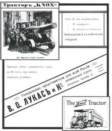Машина весом 12 т имела пулеметно-пушечное вооружение и только по компоновке (орудие было установлено традиционно в корме) отличалась от первых английских и французских танков. Кстати, и иностранные танки строились на базе тракторов. Машину Гулькевича в России называли бронетрактором, так как во время ее создания термин «танк» был еще неизвестен. Полковник Гулькевич предлагал массированное применение бронированных тракторов, придавая их по 40 единиц на один армейский корпус в качестве средства прорыва укрепленных позиций противника. Однако его идея не нашла поддержки, в основном, из-за отсутствия в России необходимого числа пригодных для бронирования мощных тракторов. В ограниченном количестве подобные бронетракторы на шасси производства американской фирмы «Ломбард» и английской «Клейтон» строились позже, во время Гражданской войны на Юге России и использовались Добровольческой армией. 30 июля 1914 г. в Москве на съезде уполномоченных губернских земств был создан Всероссийский земский союз помощи больным и раненым воинам (ВЗС). 12 августа, с Высочайшего соизволения, решение съезда было официально учреждено. Там же 8-9 августа на съезде глав городов был основан Всероссийский союз городов (ВСГ). «Высочайшее соизволение на разрешение городам вступать в состав Всероссийского союза городов воспоследовало 16 августа 1914 г.». Главой комитета Земского союза был избран князь Г.Е. Львов, а руководителем комитета Городского союза – М.В. Челноков, московский городской голова. Вначале союзы занимались помощью больным и раненым, оборудованием госпиталей, формированием санитарных поездов, устройством пунктов питания, заготовкой медикаментов, белья, обучением медицинского персонала. В дальнейшем они стали также выполнять заказы Главного интендантского управления по снабжению армии, организовывали помощь беженцам. Получив от правительства право распоряжаться частью военных заказов, земское движение деятельно занималось снабжением армии. Летом 1915 г. союзы организовали мобилизацию кустарной промышленности России для снабжения армии вооружением и снаряжением. 10 июля был создан объединенный Главный комитет по снабжению армии Всероссийских земского и городского союзов, более известный как «Земгор». Для успешной доставки тяжелых военных грузов в условиях бездорожья автомобильный отдел ВЗС в 1916 г. начал закупать в Северной Америке тракторы – колесные «Сэндаски» и гусеничные «Ломбард». В 1916 г. «Земгор» получил от командира Морского полка заказ на моторные катера. Автомобильный отдел приобрел в Москве, Астрахани и Финляндии около 30 катеров, отремонтировал их и доставил в войска. При их транспортировке применялись в качестве тягачей грузовые автомобили и тракторы «Ломбард». Главными поставщиками тракторной техники для Военного министерства Российской империи были Великобритания и Североамериканские Соединенные Штаты. До середины 1914г. масштабы торговли между Россией и САСШ были сравнительно невелики. Однако с началом войны объем торговли резко возрос – к 1916 г. он увеличился почти в 10 раз по сравнению с 1913 г. Доля САСШ в российском импорте к тому времени достигла 33,2%. Одним из важнейших продуктов этого импорта стали автомобили и тракторы. Размещением русских военных заказов за океаном поначалу занималось созданное в декабре 1914 г
