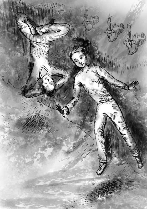 — Я бы включила тебе свет, — с сожалением произнесла тетя Зина, — но это возможно, только когда она накрыта. Электрический свет ее разрушает. Ее можно держать лишь при естественном освещении или в полной темноте. Смотри, — указала она на пятна, при прикосновении к которым железо оставляло на пальцах черную пыль, — вот свидетельство чьего-то безрассудства в последние века. Книга медленно разрушается после того, как ее долго держали в неподходящих условиях. Сашка тоже подошел. Книга впрямь выглядела неважно: на тусклой поверхности металлической плиты, что служила обложкой, кроме непонятного рельефного рисунка он разглядел многочисленные пятна, о которых говорила тетя Зина. А один угол у книги вообще был смят — очевидно, от сильного удара. Да, подумал Сашка, жизнь тебе досталась непростая! — А путешествовать с ее помощью можно? — с любопытством спросил он. — Конечно! — ответила тетя Зина и коротко рассмеялась. — Только в наше время это представляет некоторую проблему. Видите ли, — пояснила она, — когда-то можно было легко найти место, куда хочешь попасть и где нет поблизости людей. Теперь же и людей слишком много, и всяческих строений вокруг — а вы, я думаю, не хотели бы оказаться внутри бетонной стены. — А что еще она может? — в свою очередь спросил Андрей. — Даровать невиданную силу, к примеру. Или острый ум, достаточный, чтобы выучить за ночь китайский язык. Но опять же, — усмехнулась тетя Зина, — только на время. Когда оно пройдет, вы забудете, что выучили с ее помощью. — А сколько она весит? — опять спросил Сашка. — Не знаю, никогда не взвешивала, — иронично заметила тетя Зина, — но больше двух метров мне с ней не пройти. Однако, думаю, вдвоем вы легко бы с ней справились. Она вдруг замолчала, как бы прикидывая что-то про себя. — Кстати, эта книга в самом деле может стать вашей, правда, при одном условии. Эта фраза прозвучала для ребят как гром с ясного неба. — Что за условие? — встрепенулся Андрей. Тетя Зина ответила не сразу. Она осторожно накрыла книгу покрывалом и, включив свет, задула все свечи. Потом подошла к двери. — Давайте обсудим это в более подходящей обстановке, — мягко сказала она, приглашая вернуться наверх в гостиную. Ребята пошли следом. — Здорово было, правда? — возбужденно произнес Андрей, поднимаясь за Сашкой. — Угу, — пробурчал тот, судорожно соображая, что может потребовать тетя Зина за свою железяку и почему ей приспичило с ней расставаться. А также почему именно им выпала удача заполучить такое сокровище. Андрей говорил еще что-то, но Сашка не слушал. Он тоже хотел получить железную книгу и одновременно подозревал тетю Зину в самых черных намерениях. Потому в голове у него было смутно, да и на душе тоже. В гостиной они сели на небольшой диван, тетя Зина устроилась в кресле напротив. Она обвела ребят выразительным взглядом и проникновенно сказала: — Теперь, если вам всё еще интересно, мы можем обсудить, что я хочу получить взамен этой замечательной книги. — Что же? — не вытерпел Андрей, глядя на нее во все глаза. Но тетя Зина смотрела не на него. — То, на что я готова ее обменять, находится у Александра. Да, да! — сказала она, услышав удивленный возглас Андрея. Сашка похолодел. Он почти догадался, что за этим последует. — У тебя, Саша, — продолжила тетя Зина, — есть кое-что, попавшее к тебе в результате… эээ… несчастного случ