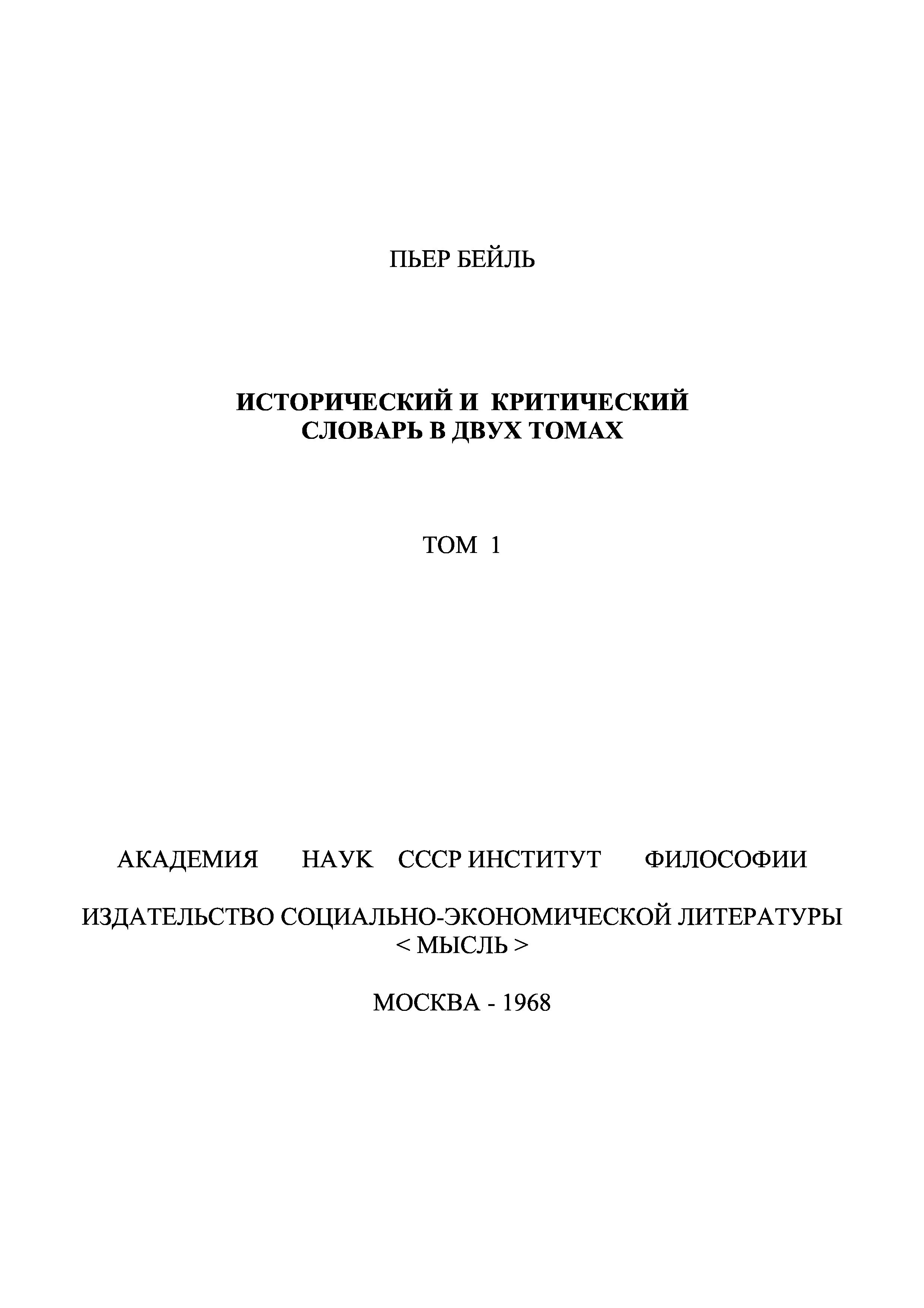 "Исторический и критический словарь в 2-х тт. Т. 1." - читать интересную книгу автора