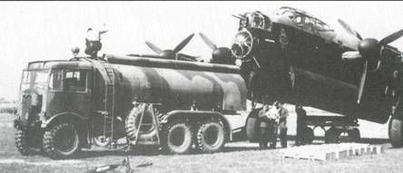Два "Ланкастера" I (с моторами "Мерлин" 24) были оборудованы этими "оседлавшими" машину баками. Оба они испытывались в Индии; их вес достигал почти 32700 кг. Альтернативным средством для увеличения радиуса действия "линкольнов" из "Тайгер форс" было использование относительно малоизученной дозаправки в воздухе, причем как танкеры предполагалось использовать тоже "ланкастеры". Фирме "Флайт рефьюэлинг", которая разрабатывала эту технику еще до войны, был дан запрос о возможности переоборудования 600 "ланкастеров", но война кончилась раньше, чем начались эти работы. Как уже ранее отмечалось, большое значение, придаваемое "Ланкастеру" в бомбардировочных операциях, практически исключало его использование в других ролях. Однако в 1942 г. часть 44-й эскадрильи, а затем вся 61-я эскадрилья кратковременно действовали под контролем Берегового командования. За это время один из "ланкастеров" участвовал в уничтожении подводной лодки. За время войны под контролем Берегового командования они совершили только 110 вылетов, но после войны несколько эскадрилий летали на "ланкасте-рах", приспособленных к несению спасательной службы и для дальней морской разведки. На последнее боевое задание во время войны "ланкастеры" вылетели 25 апреля 1945 г., когда 5-я группа днем атаковала убежище Гитлера в Берхтесгадене (с эскортом Р-51 "Мустанг" 8-х ВВС США). Ночью последовал рейд 119 "ланкастеров" из той же группы на нефтехранилища для заправки подводных лодок в Осло-фьорде. В апреле и мае "ланкастеры" летали на несколько заданий. При этом каждый самолет нес в бомбоотсеке пять контейнеров с продовольствием, сбрасывавшимся на голландские города, которые испытывали недостаток пищи. За 3156 самолетовылетов было сброшено более 6000 тонн продовольствия. Последним вкладом "ланкастеров" в войну была мирная роль пассажирских самолетов. Между 4 и 28 мая "ланкастеры", беря по 25 пассажиров, перевезли обратно в Великобританию около 74000 военнопленных, освобожденных из немецких лагерей. Перевозка войск всегда рассматривалась как альтернативная роль для "Ланкастера". Эта финальная операция подтвердила возможность двойного применения лучшего британского бомбардировщика. В 1944 г. начались работы по более полной переделке "Ланкастера" в транспортник, которые привели к тому, что и военный, и гражданский варианты "Ланкастриана" начали эксплуатироваться еще во время войны. Первый "Ланкастриан" с удлиненным носом и обтекателями вместо хвостовой турели авиакомпания ВОАС получила в феврале 1945 г. Перед этим компания уже использовала один "Ланкастер" с гражданскими обозначениями и снятыми турелями. Регулярная работа "Ланкастрианов" на линии Англия-Австралия началась в мае 1945 г. Еще один транспортный "Ланкастер" британского образца использовался компанией ТСА в Канаде. Канадские "Ланкастеры" Производство "ланкастеров" было организовано в Канаде для нужд английских королевских ВВС и по настоянию британского правительства. Этот проект впервые был обсужден в начале 1942 г. С помощью канадского правительства фирма "Нэйшнл стил корпорейшн оф Канада" организовала с "Вик-тори эйркрафт" на новом заводе в Мэлтоне (Онтарио) выпуск "ланкастеров" в варианте, подобном Mklll, но обозначенном МкХ из-за отличий в оборудовании. Один "Ланкастер" I был направлен 25 августа 1942 г. в Канаду как образец, за ним последовали рабочие че