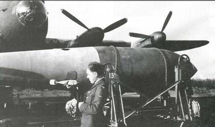 К октябрю 1942 г. в 5-й группе было девять эскадрилий, летавших на "Ланкастерах". Все это соединение было использовано в другом дневном налете, произошедшем 17 числа этого месяца. В общей сложности, 93 самолета были посланы бомбить оружейные заводы Шнейдера в Ле-Крезо во Франции. Был потерян только один бомбардировщик. Перед концом года "Ланкастеры" впервые были направлены на цели в Италии, неся 1816-кг и 3632-кг бомбы вместе с "зажигалками" через Альпы для того, чтобы сбросить их на Геную и Турин. Точность бомбометания существенно повысилась с внедрением бортового радиолокатора H2S, предназначенного для навигационных целей и определения положения мишеней. Он располагался под полупрозрачным обтекателем под задней частью фюзеляжа. Впервые он был использован 49-й эскадрильей в августе 1943 г. Однако его не ставили на самолеты с увеличенным бомбоотсеком, которые были сосредоточены в эскадрильях 3-й группы. Рейд на плотины Наиболее захватывающей из всех операций "Ланкастеров" был налет на несколько плотин в Западной Германии, проведенный 617-й эскадрильей в ночь с 16 на 17 мая 1943 г. Названная операцией "Апкип", эта атака была разрешена Бомбардировочным командованием 26 февраля 1943 г. после предварительных испытаний специального оружия, разработанного Б.Уоллисом из "Виккерс-Армстронг авиэйшн", которые показали, что имеется достаточно шансов на успех. Для налета были выбраны шесть плотин: Моне, Эдер, Сорпе, Эннепе, Листер и Швельме. Было приказано переоборудовать 20 "Ланкастеров" плюс три опытных. Оружие в окончательном виде представляло собой цилиндр диаметром 127 см, длиной 152 см и весом 4196 кг, из которых 2994 кг были взрывчаткой RDX. Для того, чтобы разрушить плотину, которая типично имела толщину у основания 34 м, сужавшуюся до 7,6 м на высоте 39,6 м, бомба взрывалась под водой у стенки плотины. Для того, чтобы достигнуть этой цели, казавшейся недостижимой для авиационной бомбы или мины, Уоллис предложил идею раскрутки бомбы перед сбросом - так, чтобы она катилась по поверхности водохранилища до встречи со стенкой плотины, затем тонула и взрывалась от гидростатического давления на глубине примерно 9 м. С разрушением всех или нескольких плотин, которые являлись частью системы гидроэлектростанций, обеспечивающей энергией индустриальный Рур, появилась перспектива нанесения ему значительного ущерба, также как и давало немедленный эффект затопления долин ниже водохранилищ. Месяц май был оптимальным для атаки - хранилища были полны. Несмотря на это, Бомбардировочное командование без энтузиазма отнеслось к перспективе отвлечения одной из боевых эскадрилий "Ланкастеров" на выполнение этой задачи и вследствие этого операция была поручена части, специально сформированной для этой цели 21 марта 1943 г.