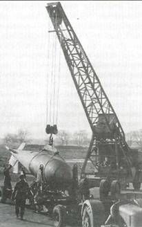 "Виккерс" разрабатывала это оружие, обозначавшееся как "тип 464", по системе, принятой в ее КБ. Конструкторы "Авро" передали первые чертежи на завод в марте 1943 г., где начали модифицировать "Ланкастер" под установку "типа 464". Модификация включала снятие створок бомбоотсека, т. к. оружие не могло полностью разместиться внутри, и демонтаж верхней турели для экономии веса. Бомба устанавливалась поперек самолета между двумя V-образными рамами. Круглые диски на концах этих рам были соединены с кольцевыми впадинами на торцах бомбы. Один из дисков приводился в действие ременной передачей от гидромотора, раскручивая бомбу перед сбросом до 500 об/мин. При отсутствии створок бомболюка и верхней турели стало возможным использовать для раскрутки бомбы обычную гидросистему "Ланкастера" после уборки шасси. Из-за того, что задание должно было выполняться на малой высоте (сброс надо было осуществить примерно с 18 м над поверхностью воды), нижний пулемет был установлен на полу фюзеляжа за бомбоотсеком, с мягкой подстилкой, на которой стоял на коленях стрелок. В передней и задней части бомбоотсека были поставлены обтекатели. Были установлены специальные прицельные устройства - триангуляционный прицел, который использовал башенки на концах плотины для того, чтобы произвести сброс с требуемого расстояния в 360-410 м от цели и пара световых меток, которые совпадали на поверхности воды, когда самолет оказывался на требуемой высоте. Все 23 "Ланкастера", переделанных для несения бомб Уоллиса, были стандартными BIN с моторами "Мерлин" 28. Первый из трех прототипов прибыл в испытательный центр ВВС в Фарнборо 8 апреля 1943 г. Второй использовался для опытного бомбометания в Рекульвере, в Кенте, а третий в этом же месяце испытывался на управляемость. Первая из 20 "серийных" переделок прибыла в 617-ю эскадрилью в Скэмптоне 18 апреля. Операции предшествовал месяц интенсивных дневных и ночных тренировок. В ночь 15 мая вылетели 19 самолетов - один из "Ланкастеров" был поврежден на тренировке за пять дней до этого. Эскадрилья шла тремя волнами. Первую вел командир Г.Гибсон. Она состояла из девяти самолетов, а остальные по пяти. Первая волна начинала атаку на две наиболее важные из шести плотин - Моне и Эдер, вторая волна (которая взлетала на самом деле первой) атаковала плотину Сорпе, а третья, использовавшаяся как мобильный резерв, должна была атаковать плотины Сорпе, Эннепе и Листер. Только первая волна была удачной: пять самолетов сбросили бомбы на плотину Моне, что привело к ее разрушению. Один "Ланкастер" был потерян. Оставшиеся три машины атаковали Сорпе и одна разрушила плотину Эдер. Две бомбы были сброшены на плотину Сорпе, одна на Эннепе без серьезного эффекта. Восемь из 19 "Ланкастеров" не вернулись. "Тэллбой" и "Тирпиц" "Ланкастеры" с увеличенным бомбоотсеком для размещения 3632-кг бомб оказались способны нести и 5448-кг вариант этой же бомбы, который был длиннее, но имел тот же диаметр, а также обтекаемую 5448-кг бомбу "Тэллбой", сконструированную Б.Уоллисом. Их применила в бою 617-я эскадрилья, которая сдала свои специально модифицированные "Ланкастеры" сразу же после операции по разрушению плотин. Одной из первых операций с высокоэффективной бомбой "Тэллбой" была атака на железнодорожный туннель Сомюр, через который немецкие подкрепления перебрасывались на фронт в Нормандию. В ночь с