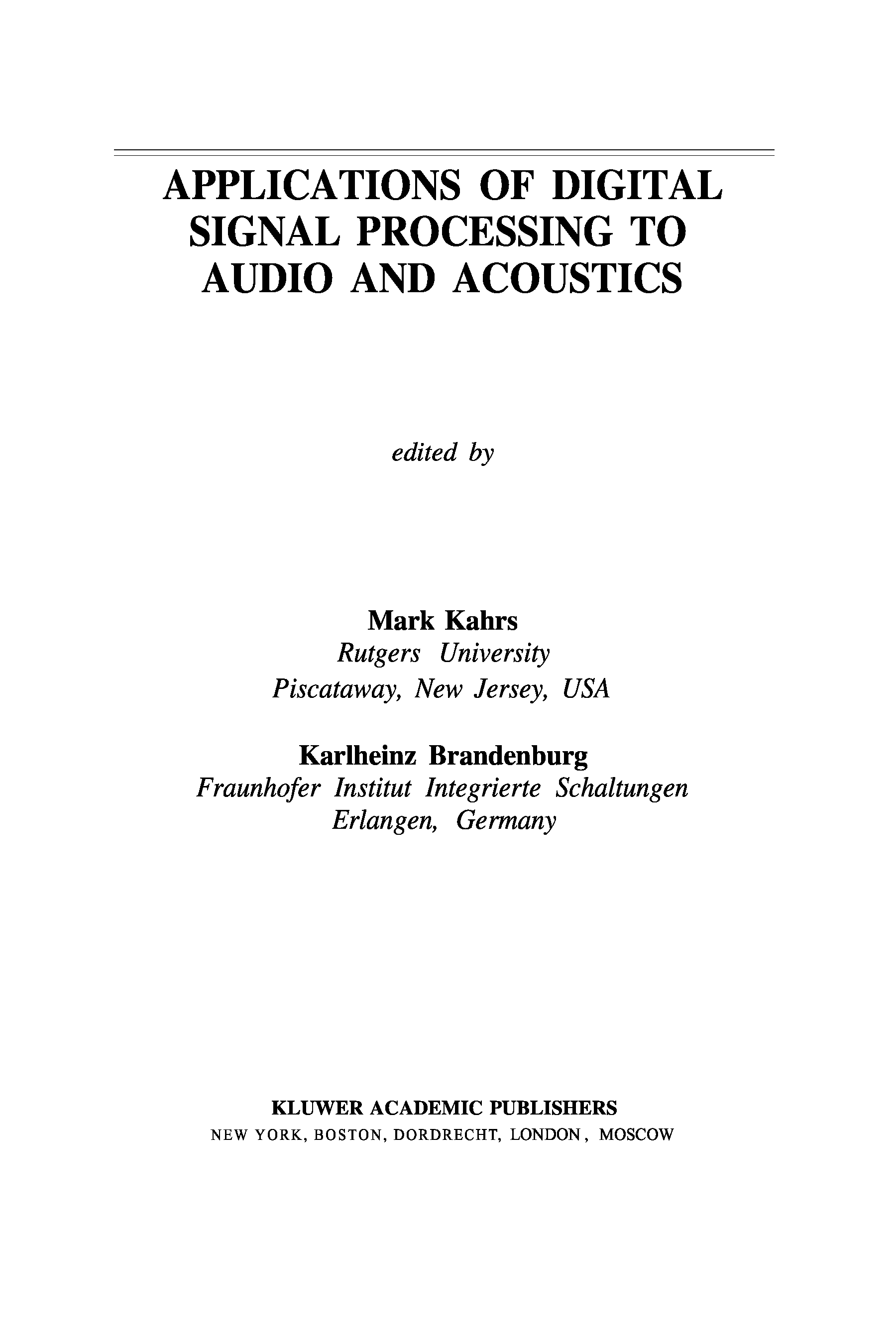 "Applications Of Digital Signal Processing To Audio And Acoustics" - читать интересную книгу автора (Brandenburg, Kahrs)