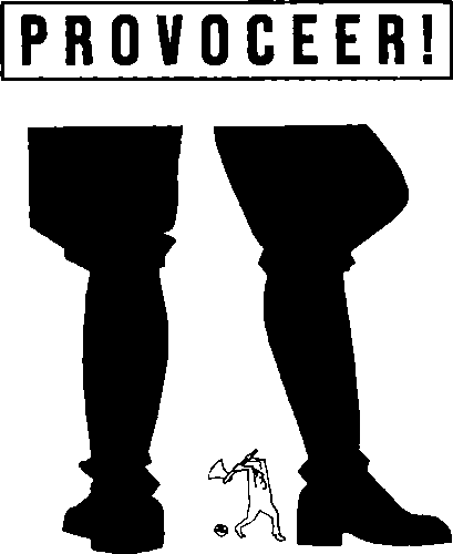 Что такое провотариат? Что такое провотариат? Провос, битники, художники, стиляги, рокеры, чернорубашечники, хулиганы, неудачники, анархисты, противники бомбы... Все те, кто не хочет делать карьеру, кто живет неупорядоченной жизнью, кто обитает в каменных джунглях Лондона, Парижа, Амстердама, Нью-Йорка, Москвы, Токио, Берлина, Милана, Варшавы, все, кто чувствует себя не вписавшимся в это общество. Провотариат — последний революционный элемент в наших «развитых» странах. Обыкновенный пролетариат находится в политическом рабстве. Смотрит телевизор. Он присоединился к своему старому врагу — буржуазии и теперь вместе с буржуазией составляет единую серую массу. Новую революционную ситуацию создает противостояние провотариата и этой массы. Но провотариат не класс, он для этого слишком разнороден. Анархия требует революции «ПРОВО» не надеется на свершение анархической революции. Тем не менее мы продолжаем верить в анархизм. Для «ПРОВО» анархизм — это единственная приемлемая социальная концепция. Это наше идеологическое оружие в борьбе против авторитарных сил, которые противостоят нам. Если провотариату так и не хватит сил на полномасштабную революцию — у нас всегда останется ПРОВОкация. Несмотря на то, что провокация — это булавочный укол, в нынешних обстоятельствах именно она становится нашим оружием. Это наш последний шанс ударить власть в ее мягкое подбрюшье. При помощи наших провокационных акций мы заставим власть снять маску. Униформа, сапоги, кепи, шашки, резиновые дубинки, брандспойты, собаки, слезоточивый газ и прочие средства подавления, которые имеются у властей, должны быть использованы против нас. Таким образом мы заставим их показать свое истинное лицо: выпяченные подбородки, сдвинутые брови, глаза горят ненавистью, меча молнии налево и направо, приказывая, запрещая, обвиняя.Так постепенно они будут становиться все менее и менее популярными. В массовом сознании наступит анархия. НАСТУПИТ КРИЗИС. Это наш последний шанс. СПРОВОЦИРУЕМ КРИЗИС ВЛАСТИ!Ко всеобъемлющей провокации международный провотариат призывал «ПРОВО», Амстердам. ПРОВОЦИРУЙТЕ!!! СОЗДАЙТЕ АНАРХИСТСКИЕ ГРУППЫ!!! ОПАСАЙТЕСЬ! ПРОВОС, МЫ РИСКУЕМ ПОТЕРЯТЬ ЦЕЛЫЙ МИР!!! Техника провокации Это выдержки из брошюры, озаглавленной «Это вам на память о Западной цивилизации». Здесь приводится версия, распространяемая во время Провокаций. Играющий провотариат должен играть в умные игры. Это должна быть игра, отражающая интеллектуальную борьбу на революционной основе, но тем не менее игра. В условиях авторитарной этики, проповедующей обязательную занятость и пользу, игра, бесполезная и бездельная, — перманентная провокация. Это самоочевидно, что те, кто пишет «письма к редактору», желают видеть нас в рабочих лагерях.