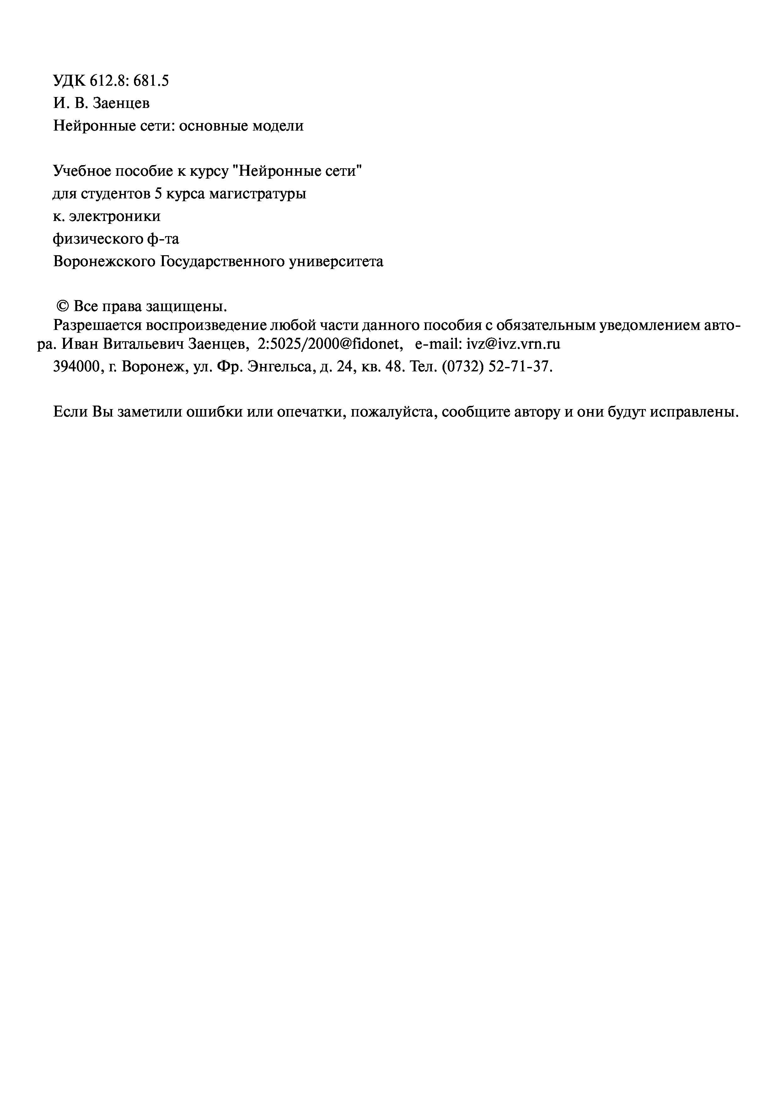 "НЕЙРОННЫЕ СЕТИ ОСНОВНЫЕ МОДЕЛИ" - читать интересную книгу автора