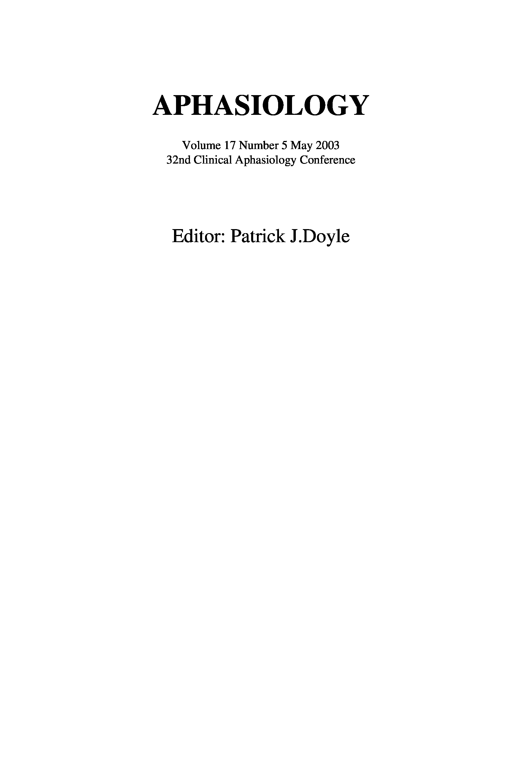 "32nd Annual Clinical Aphasiology Conference: A Special Issue of Aphasiology" - читать интересную книгу автора