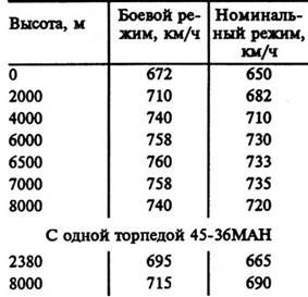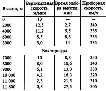 При взлетной массе 14 800 кг и одной торпеде характеристики скороподъемности были такими.